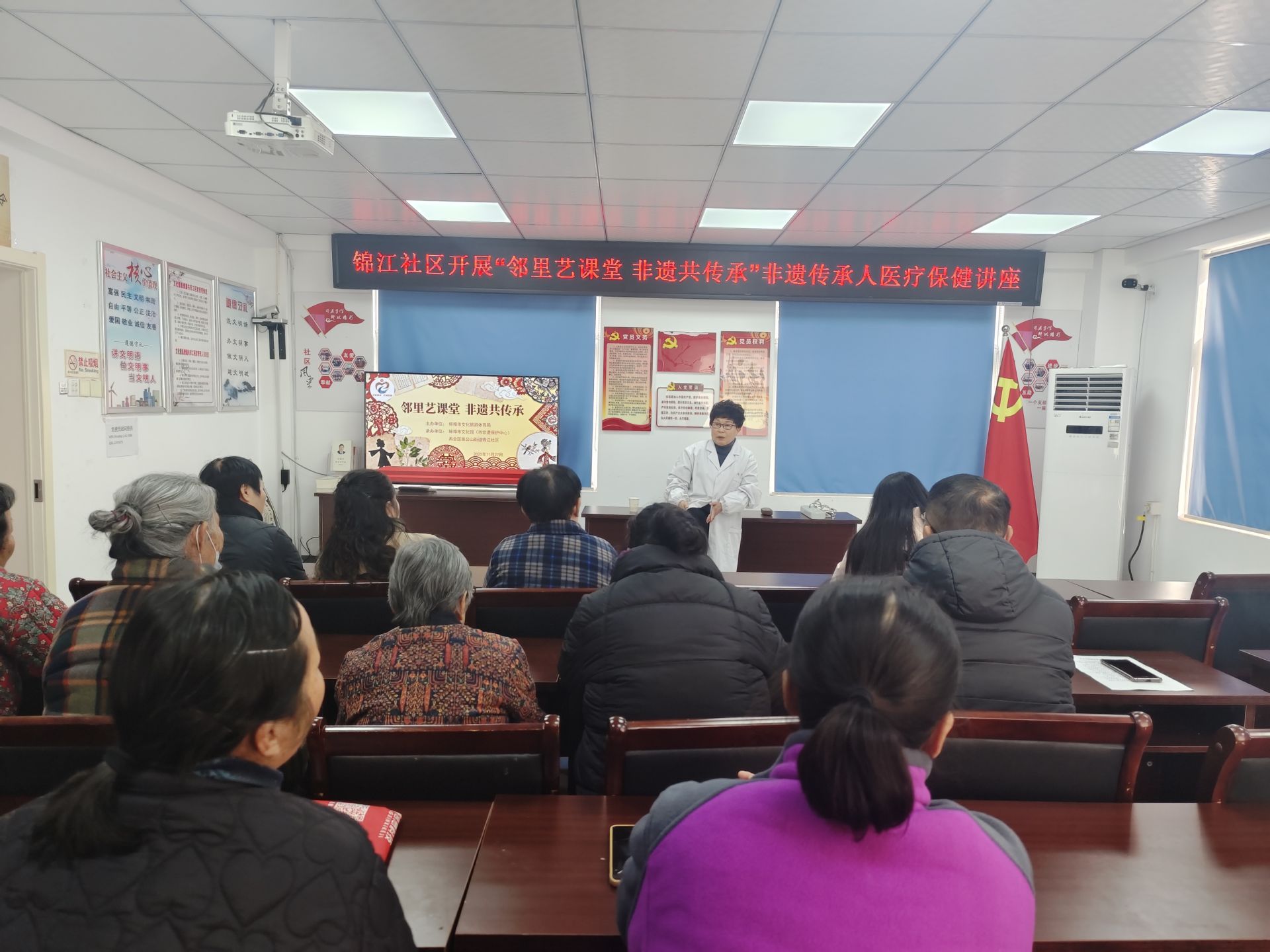 近日,禹会区张公山街道锦江社区的居民们围坐一堂,专注地听着卢云光医生讲解中医骨科养生知识,不时低头做着笔记。这是蚌埠市文化馆(市非遗保护中心)组织开展的“非遗共传承 邻里艺课堂”主题活动中的生动一幕。这样的场景很多社区已成为常态,非物质文化遗产正以各种形式走进社区,融入居民的日常生活。