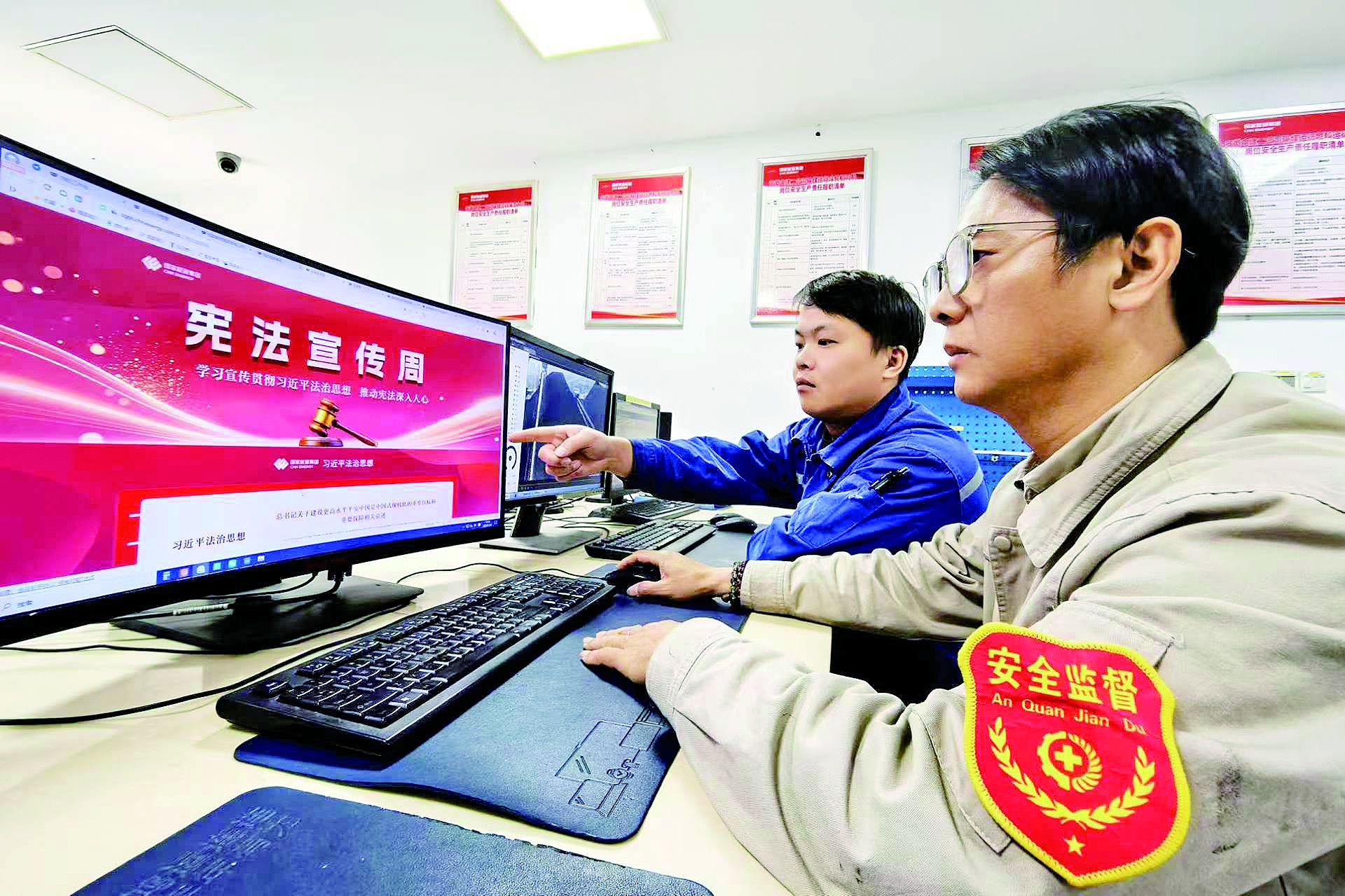 时逢国家能源集团“大干五十天,决胜收官战”活动关键时期,该厂秉持秉承国家能源集团安徽公司“创新、精益、开发”的工作理念,坚持“植根安徽、融入安徽、助力安徽、服务安徽,在安徽发展,在安徽奉献”,结合生产实际,采取线上宣传、线下活动相结合的形式,开展《习近平法治思想学习纲要》解读、党的二十届四中全会精神、中央全面依法治国工作会议精神,以及习近平法治思想提出以来全面依法治国取得的历史性成就等专题学习,推动干部职工“沉浸式”学习宣传法治思想,推动各项工作在法治轨道上高效运行,全力保障年度工作任务高效收官。结合当前码头三期扩建施工、煤棚BIPV光伏施工等劳动用工重点领域,指派厂内法律专业人员开展劳动关系、法律风险防范专题宣讲进现场,围绕劳动合同的签订与履行、员工权益保护等方面讲解《中华人民共和国劳动合同法》《中华人民共和国就业促进法》等相关法律法规,并结合实际案例剖析企业可能面临的法律风险。