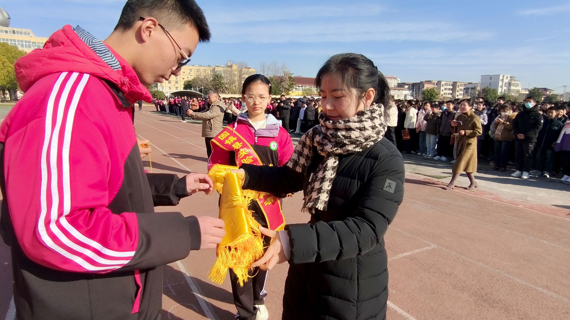 12月15日上午大课间,固镇县实验中学教育集团谷阳校区举行升旗仪式,同步开展淮三角第二次质量调研表彰活动,凝聚师生奋进力量。