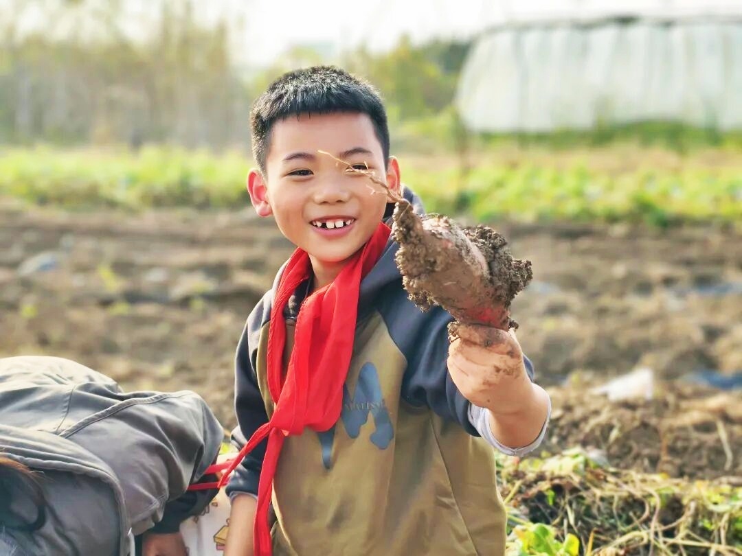 来到红薯地,同学们卷起袖子,拿起小铲,化身“农田小卫士”。拨开藤蔓、松动泥土,每当挖出一个个饱满的红薯时,田间便爆发出阵阵欢呼。尽管双手沾满泥土,汗水浸湿衣襟,但捧着自己亲手挖出的“战利品”,孩子们脸上写满了自豪。这份沉甸甸的收获,不仅来自土地,更源于劳动的付出。