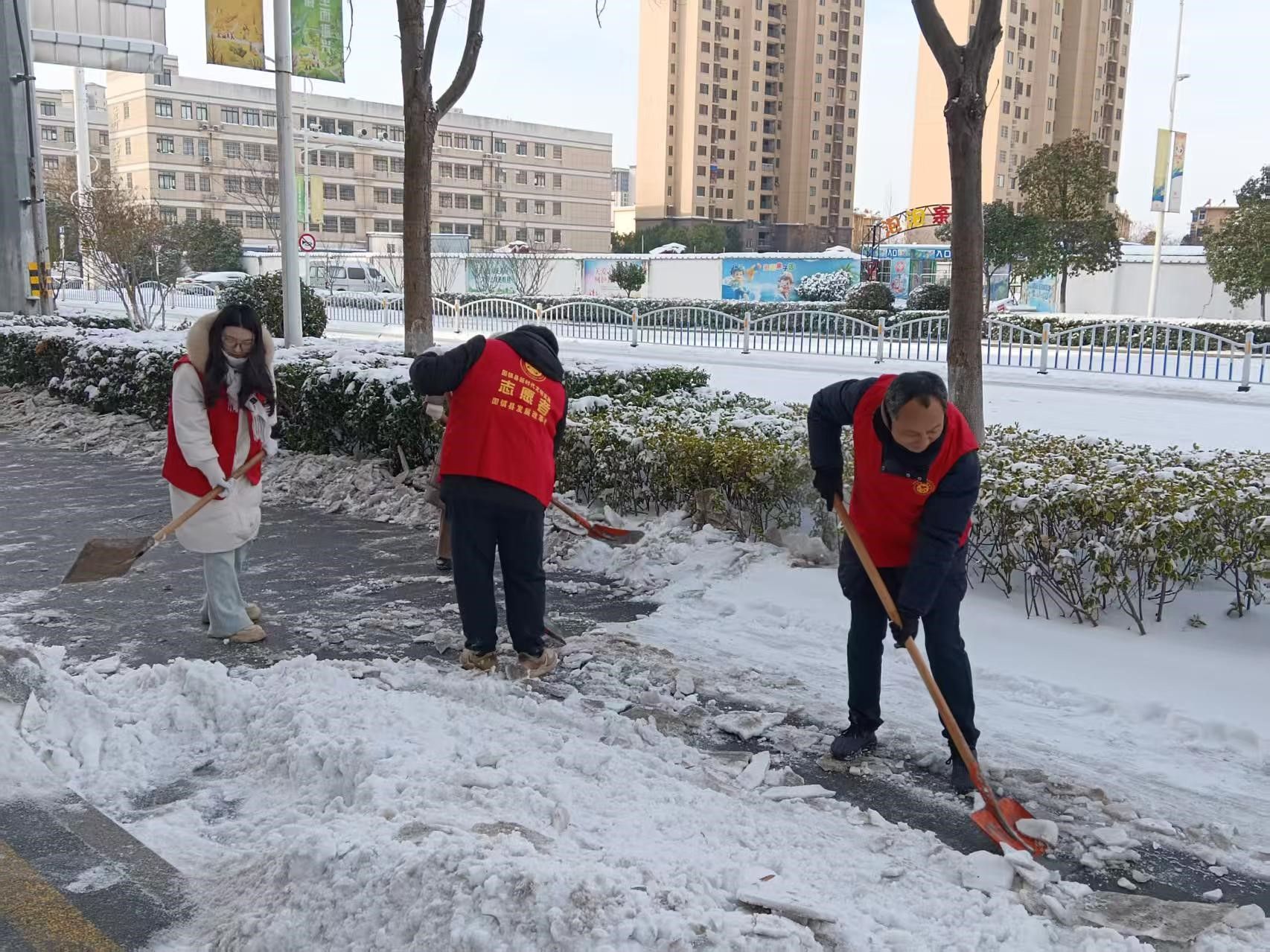 近日,固镇县寒潮来袭,大雪纷飞,为保障人民群众正常生活和出行安全,充分发挥新时代文明实践阵地作用,20日上午,固镇县县直各单位干部群众积极投入到除冰扫雪保畅通行动中。