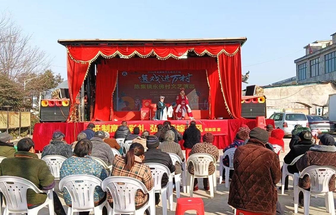 近日,在安徽省怀远县陈集镇,冬日的乡村处处洋溢着欢乐与温暖。该镇创新宣传形式,以“送戏下乡”为载体,在老郢村、陈集村、君王村、永佛村等村巡回开展主题鲜明的文艺演出和宣传活动,将文明健康的生活理念和新时代婚恋观融入群众喜闻乐见的精彩节目中,推动新风尚入脑入心,为乡村振兴注入精神力量。