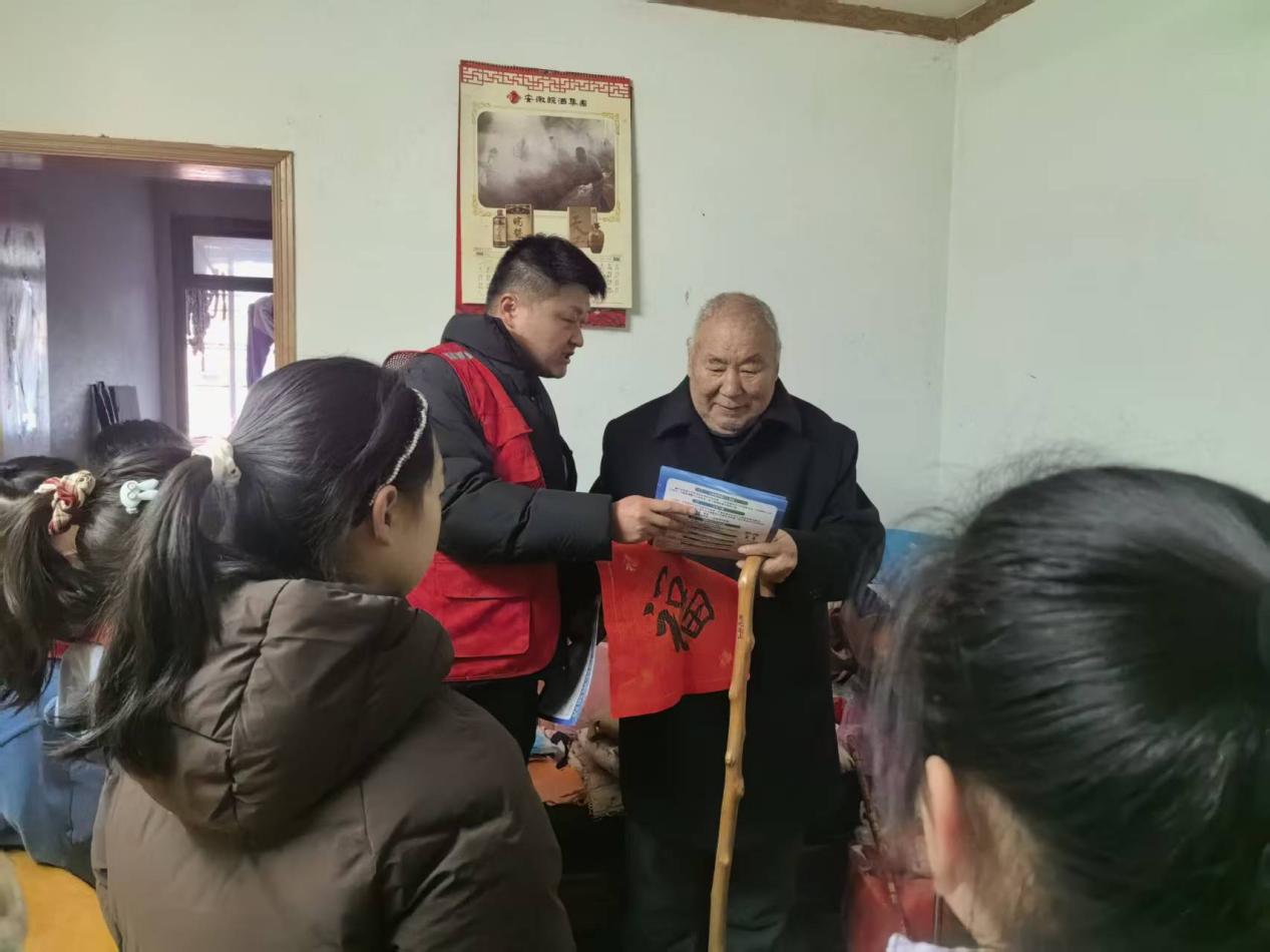 不仅如此,社区“两委”成员带领“红星志愿服务队”,携手凤阳路第一小学的学生们,逐一敲开辖区年迈退役军人的家门。学生们手持火红春联,主动为老人张贴整齐,还拿起扫帚、抹布帮着清扫院落、擦拭门窗,用稚嫩的双手传递温暖。在独居退役士兵刘爷爷家中,退役军人服务站的工作人员坐在老人身边,用通俗易懂的语言讲解用火用电安全常识,提醒老人冬季取暖注意通风、及时检查线路,还结合典型案例普及电信诈骗防范技巧,告知老人切勿轻信陌生来电、不向陌生人转账,守护好养老钱。刘爷爷指着墙上的老照片,眼眶微红、满心感慨:“孩子们来送对联、打扫卫生,工作人员还上门宣传安全知识,这份关怀太周到了,让我心里特别暖!”此次活动累计为6户高龄退役军人家庭提供卫生清扫、水电检修服务,同步完成用火用电及防诈骗知识宣讲,建立“每周电话回访”长效机制,持续守护银发老兵的幸福晚年。