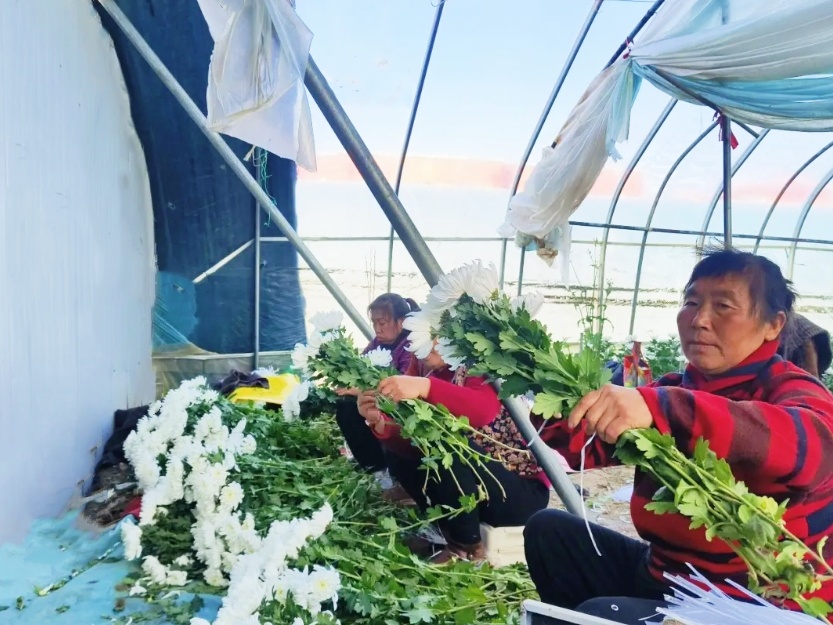 魏庄镇福绿家庭农场负责人方帅杰告诉记者:“当初就是看准了鲜花市场,特别是这种反季节的鲜花,效益更好。今年的鲜花行情不错,菊花亩产值能达到6万元。”通过线下批发商+订单配送的多元销售网络,福绿家庭农场的鲜花在销售高峰期每天可售出鲜花3万枝。