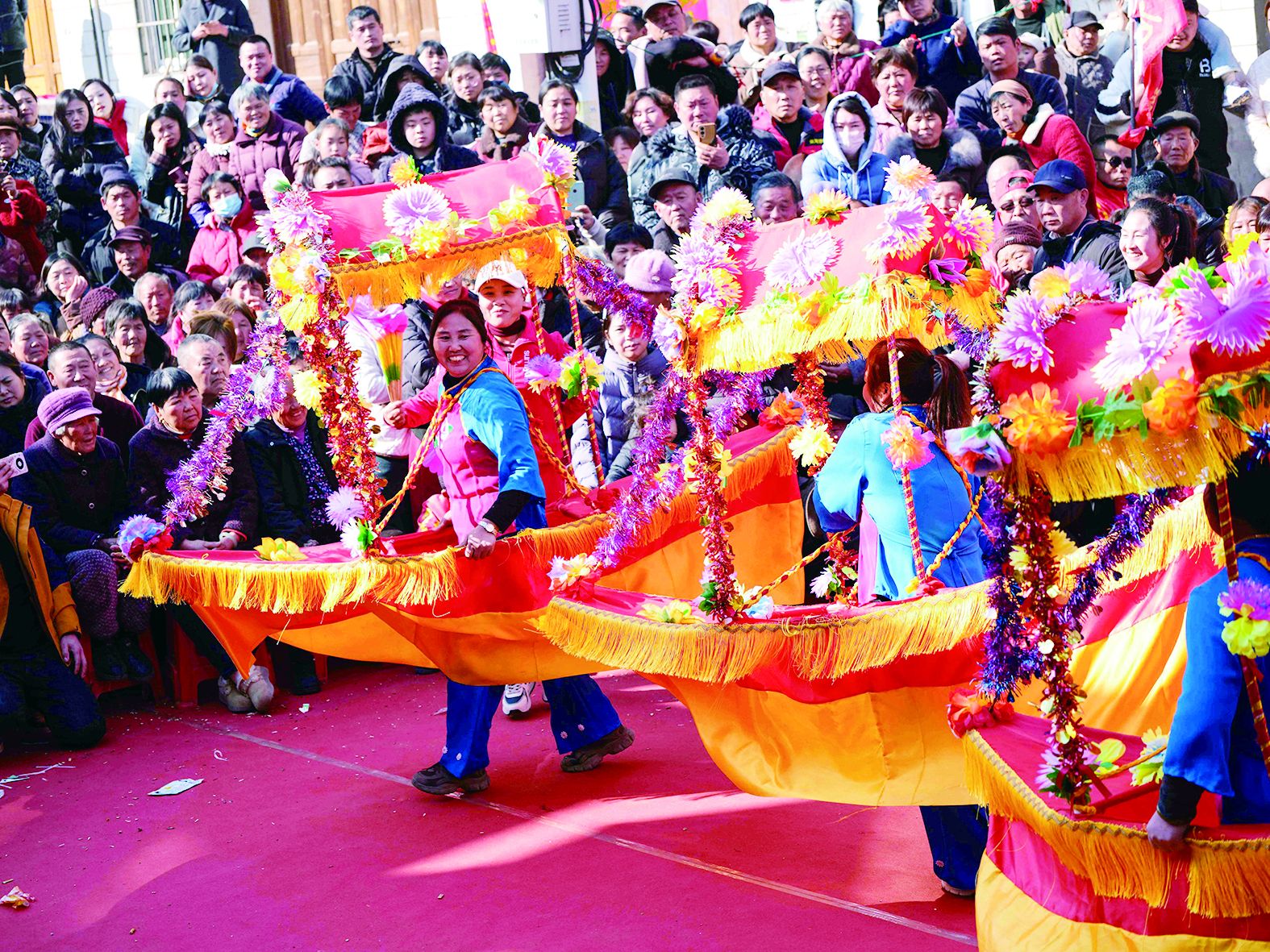 舞龙、锣鼓、赶毛驴、钱杆舞……大年初一,五河县朱顶镇石巷村举行民俗节目展演,吸引众多十里八村乡亲前来观看。 近年来,五河县持续开展免费送文化、送戏下乡活动,让群众在家门口乐享高质量文化生活。(李向前) 【编辑:王韶歆】 3