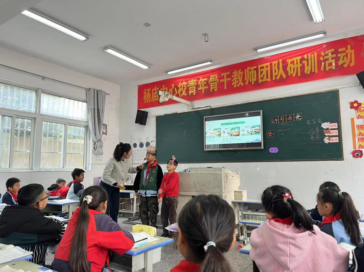 为了促进学校之间教师交流、学习,提高教师专业素养和教学能力。2023年11月9日上午,“传古颂今˙趣学古文”青年骨干教师团队研训活动在固镇县杨庙中心小学举行。