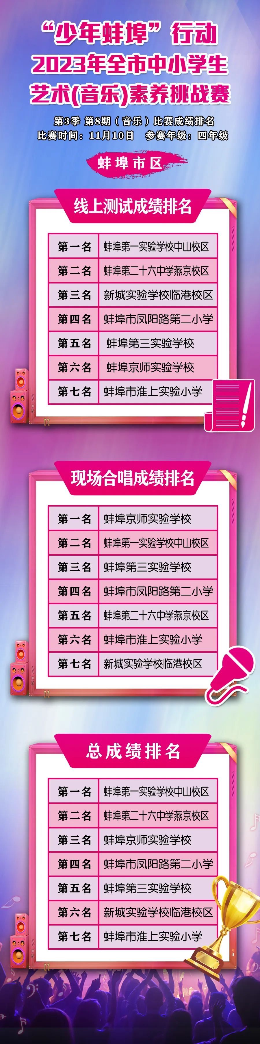 蚌埠文明网讯 为贯彻落实《中共中央办公厅国务院办公厅关于全面加强和改进新时代学校美育工作的意见》精神,提升学生的人文素养和艺术素养,近日,蚌埠市教育局在田家炳中学及三县分别进行了“少年蚌埠”行动2023年第三季第八期艺术(音乐)素养挑战赛,本次挑战赛有全市33所小学共330名学生参加。本次挑战赛成绩如何?我们一起来看看吧。(融媒体记者 周芳林)