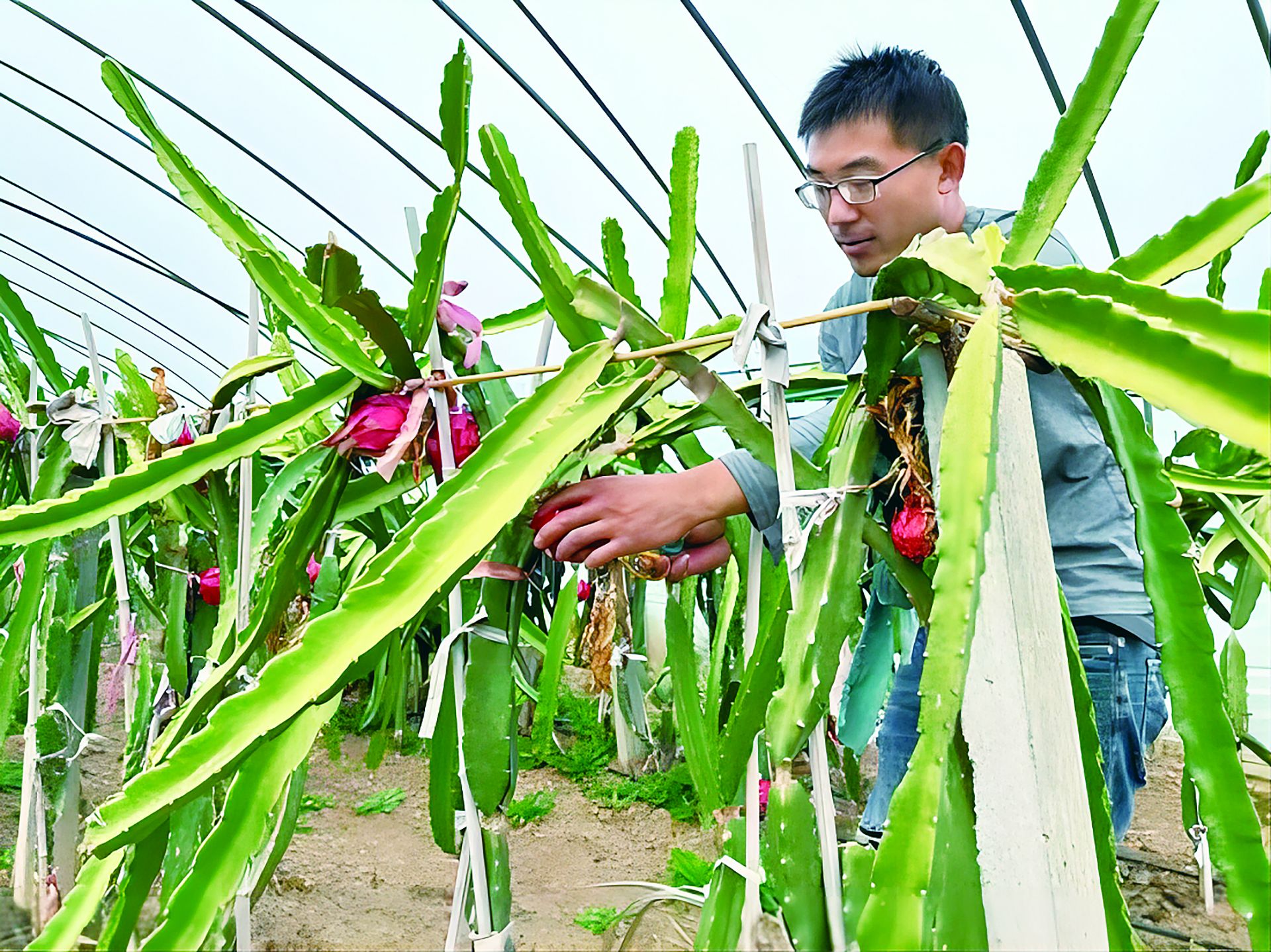 一颗颗火龙果就像一颗颗致富果,不仅为刘子豪带来了丰厚的收入,也为周边村民提供了就业岗位。“俺们年纪大了也不适合外出务工,农闲时就来农场干活,不仅能照看家里,一天还能有80块钱收入。”正在采摘火龙果的村民陈兰云开心地说。