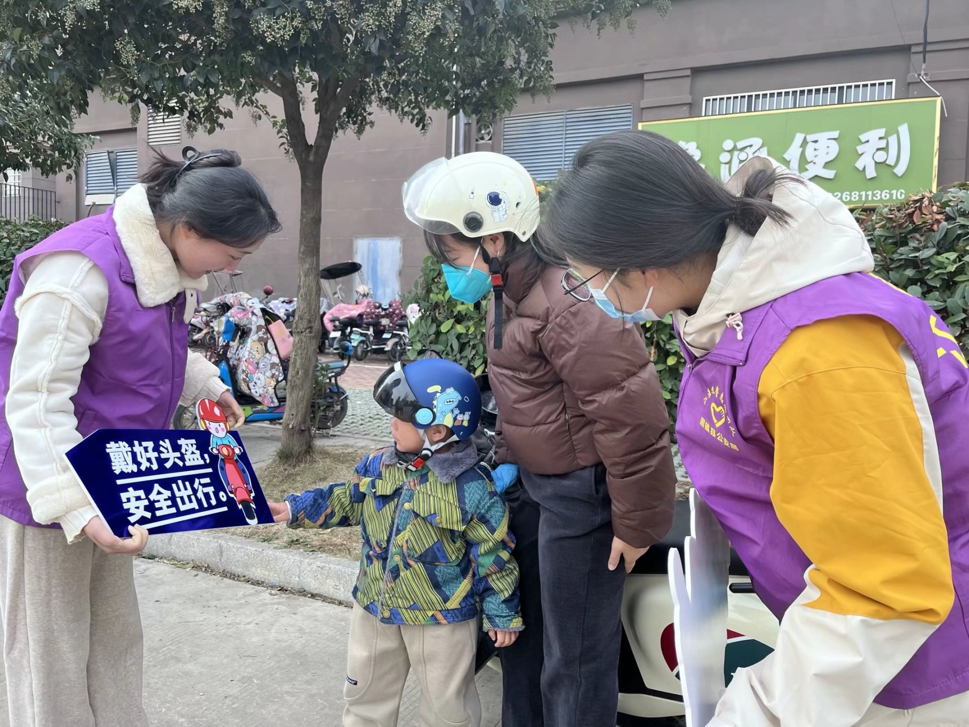 为进一步加强幼儿和家长的交通安全教育,提升交通安全意识,养成自觉佩戴头盔的良好出行习惯,固镇县示范幼儿园教育集团积极发挥党组织和党员、团员青年的示范带头作用,开展了“文明交通 安全出行”活动,为家长和幼儿的安全保驾护航。