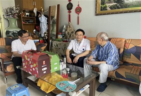 为深化落实“进门入户暖心”活动,在2023年端午节和“七一”来临之际,院党委书记郭政新,党委委员、副院长许杰,带领相关职能部门负责人,亲切看望慰问了该院离休干部、“抗美援朝”纪念章获得者、全国优秀党员获得者及老专家、老党员代表,并为他们送去慰问品,送上关心与祝福。