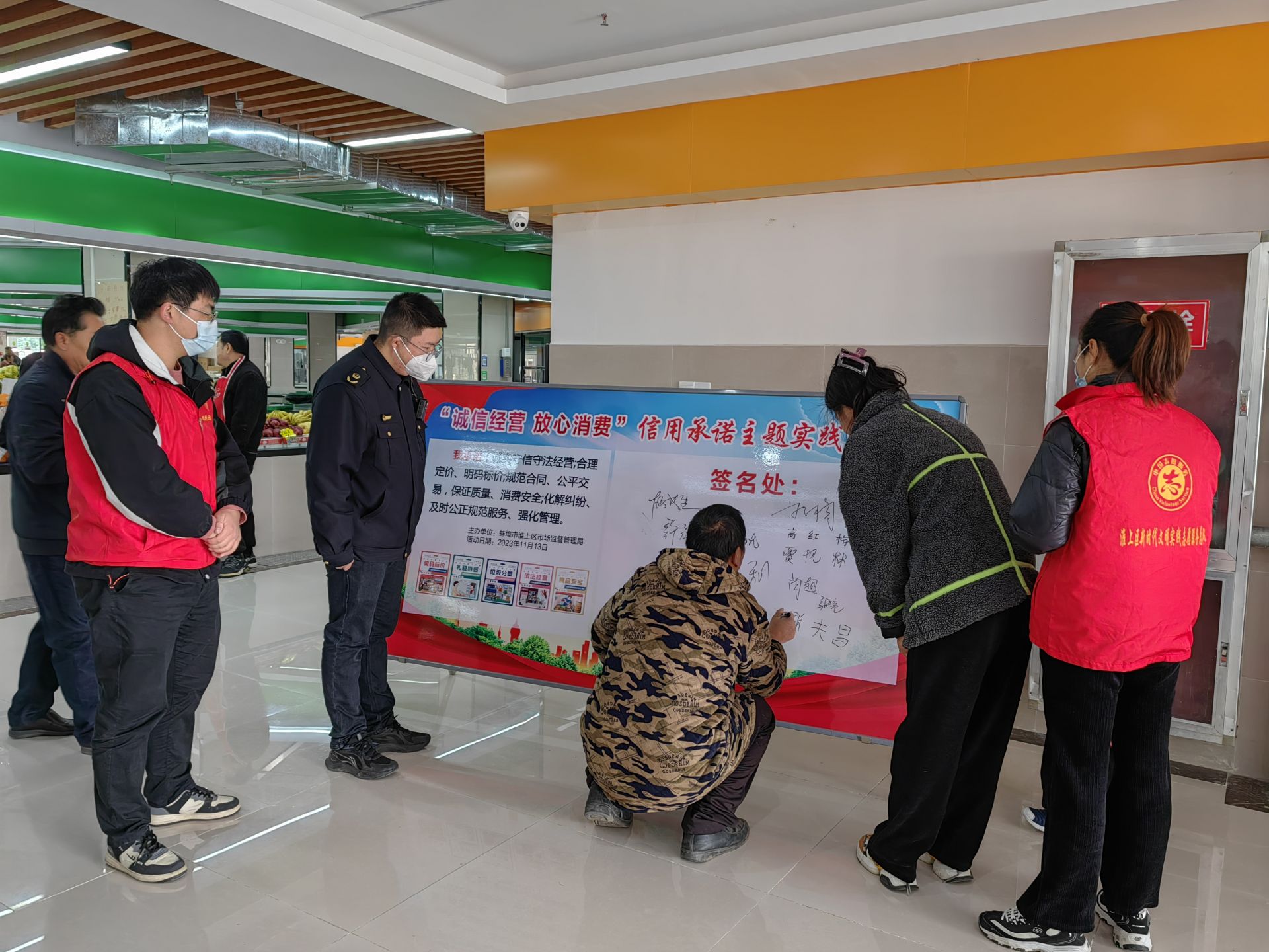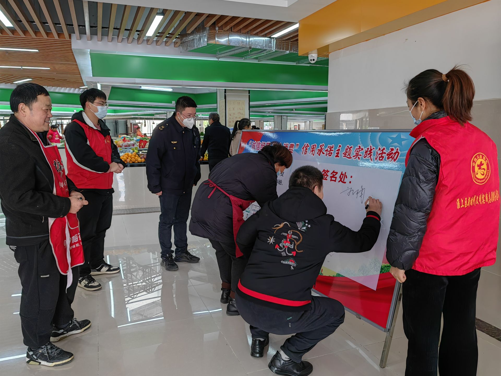 活动现场,淮上区市场监督管理局工作人员与志愿者向新开业的后楼农贸市场商户发放宣传单页,为商户讲解经营者的主要义务以及应当承担的法律责任等知识,与辖区商户签订《诚信经营承诺书》,提醒商家要诚信经营,明确主体责任,共同维护良好的经营环境。商户们纷纷表示,坚决不销售假冒伪劣商品、不违背社会公德,保障居民群众的合法权益,时刻牢记“诚信”二字,主动自觉接受社会和消费者的监督。