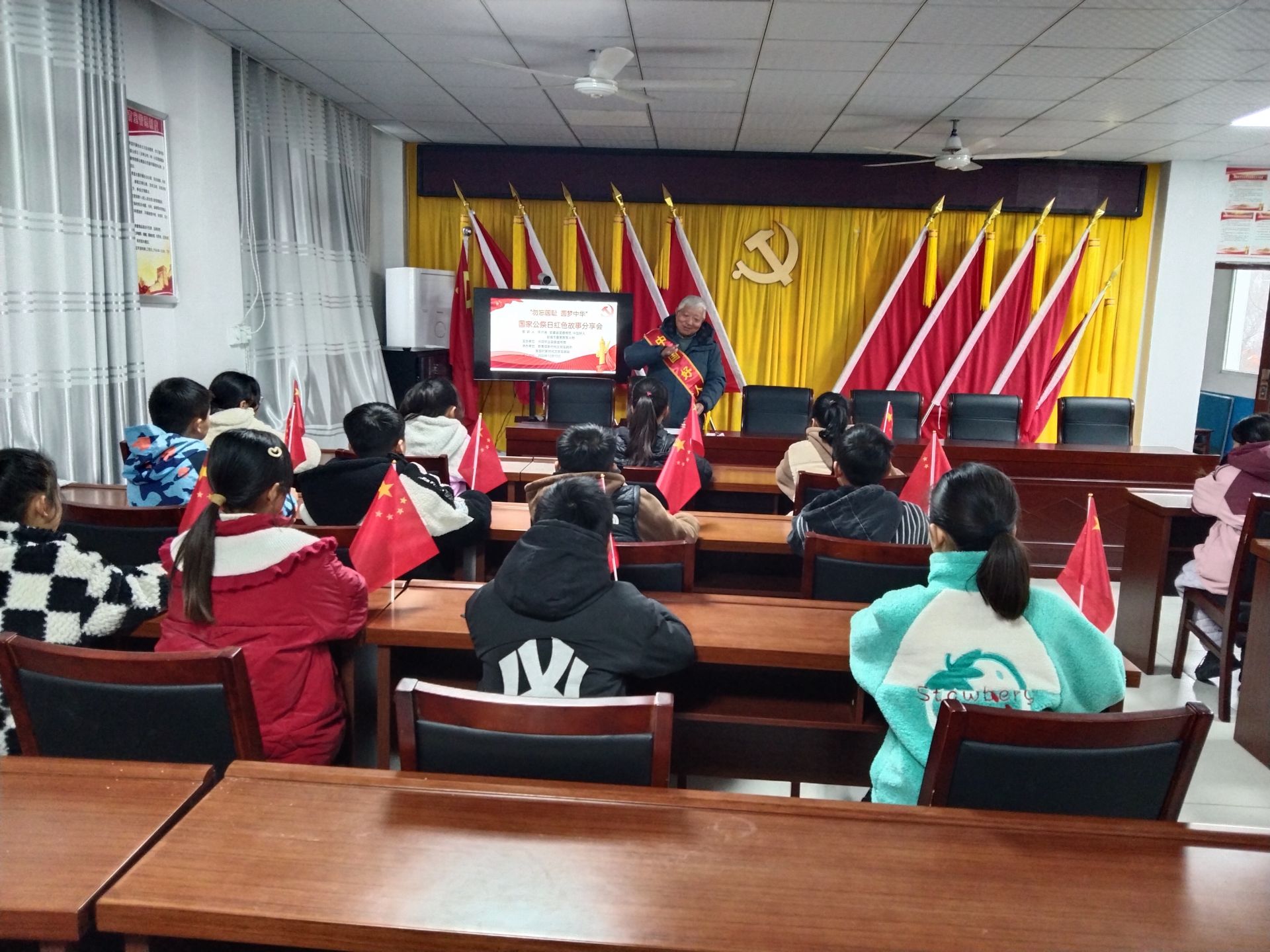 2023年12月13日是第十个国家公祭日,为了让人们铭记历史之痛,传递和平之声,不忘国耻,振兴中华,陈集镇在梨园村开展“勿忘国耻 圆梦中华”国家公祭日红色故事会活动。活动邀请安徽省道德模范、中国好人、蚌埠市最美拥军人物年介涛给学生们进行了红色故事分享。