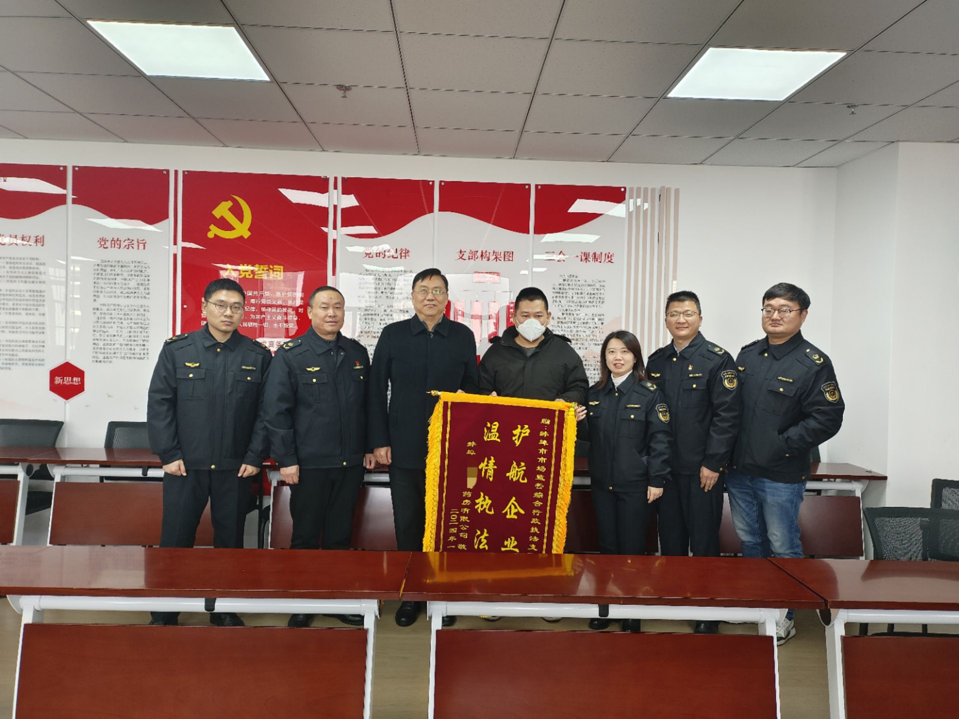 1月12日上午,市市场监管局综合行政执法支队收到了某药房有限公司负责人送来的致谢锦旗,上书“护航企业 温情执法”,这不仅是对市场监管一线执法人员工作的认可,也是对近年来积极探索市场监管“执法+普法+服务”新模式的肯定。