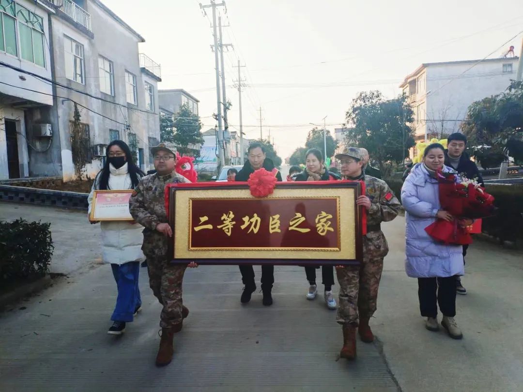 无独有偶,固镇县近日也开展了相关活动。活动开展当天,固镇县人武部、固镇县退役军人事务局主要负责人陪同火箭军某部相关负责人,前往湖沟镇马楼村,为荣立“二等功”现役军人王强家庭送去立功喜报、牌匾。在活动现场,送喜报队伍抬着“二等功臣之家”牌匾,喜气洋洋地朝着王强家中走去,街坊邻里夹道欢迎、驻足恭贺,来到王强家中,慰问组的相关负责同志除了送上“二等功臣之家”牌匾、喜报和奖励金,还与家属亲切交谈,带去党和政府对军人及军属的问候与祝福。