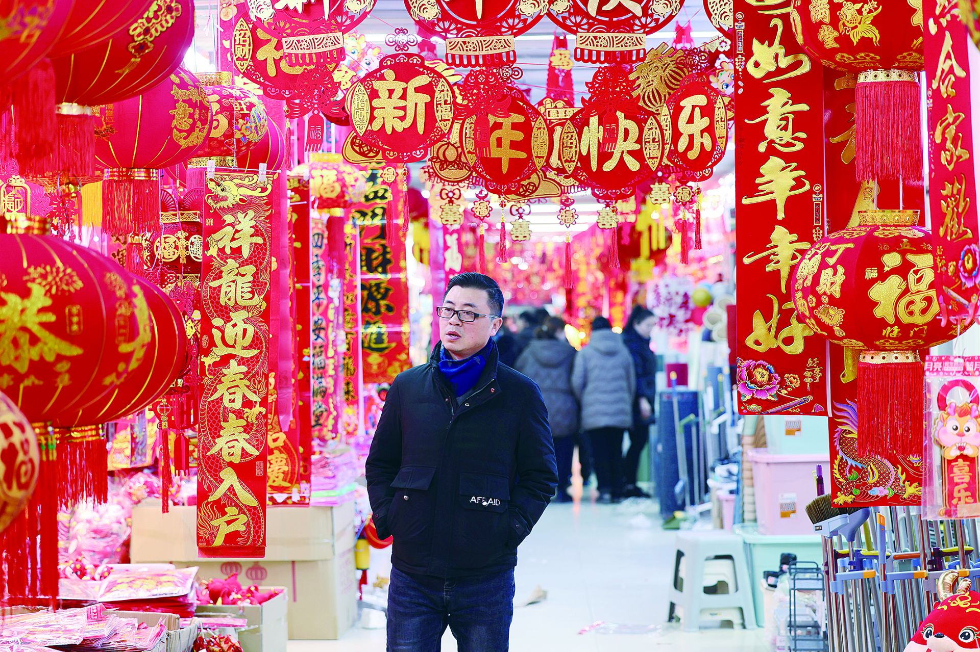 1月31日,市民在中恒·蚌埠义乌国际商贸城选购节日饰品。龙年春节临近,我市各商场内具有龙年元素的节日饰品购销两旺,大红灯笼、春联、“福”字等商品受到顾客青睐。 融媒体记者 刘晨 摄 【编辑:贾铁成】 36