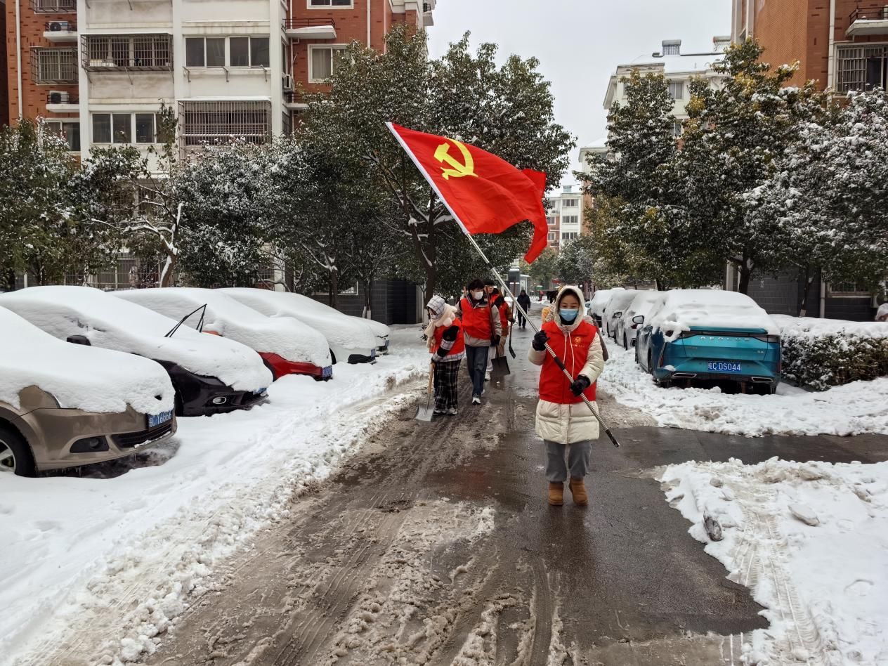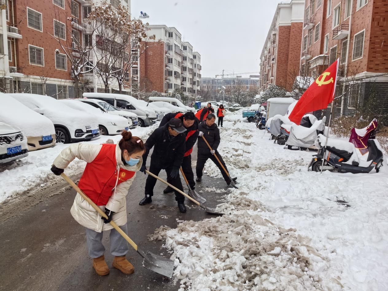 在清雪除冰的现场,党员们充分发挥了先锋模范作用。他们在鲜艳的党旗下,带领着大家积极投入到工作中。他们有的负责铲除积雪,有的负责清扫路面,各项工作有条不紊地进行着。居民代表们也积极组织居民,协调工作,为清雪除冰工作提供了有力的支持。大学生们则展现出了年轻人的朝气和活力。他们用自己的双手,为社区的道路畅通贡献着自己的力量。社区居民们也积极参与,有的居民还开着自己的铲车投入到除雪工作中,他们不仅清理了主干道的积雪,还主动帮助邻居清理积雪,展现了社区居民之间的互助和友爱。