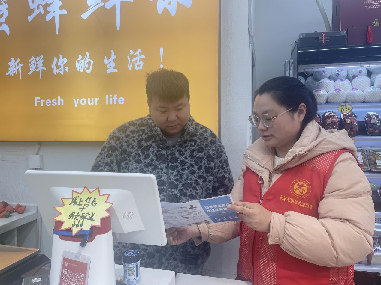 连日来,民政家园社区开展“远离非法集资 拒绝高利诱惑”防范非法集资宣传活动,提升群众对非法集资的防范意识和识别能力,引导居民树立正确投资理财观念,自觉抵制高利诱惑,远离非法集资。(张玥) 【编辑:贾铁成】 38