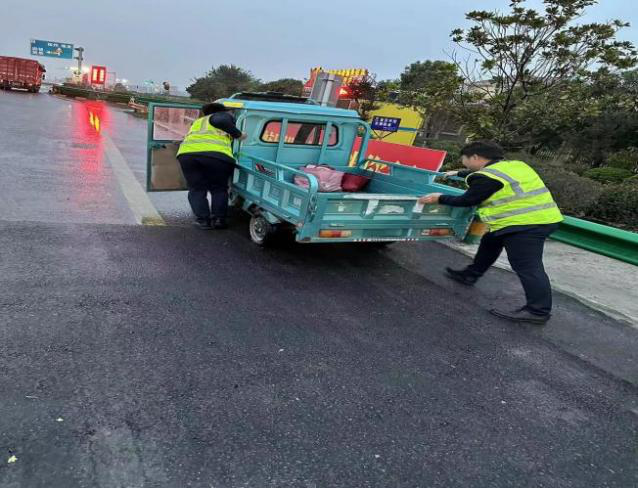 2023年10月19日下午5:20分,天空中下着雨,气温骤降,一辆行驶在非机动车道的电动三轮车突然停在了原地,红色驿站志愿者发现后立即上前查看,通过了解情况后得知由于三轮车在行驶途中突然爆胎,无法继续行驶,车上母女俩焦急又无助的表示收费站距离回家还有很长的一段距离,雨天风大自己找不到师傅来修车。当时正值下班高峰期,车流量较大,为了母女俩的人身安全同时避免交通拥堵,志愿者先安抚了母女俩的情绪,然后打伞将母女俩送到接待室休息,同时冒着雨将三轮车推到了安全区域避免发生危险,而后帮助母女俩联系了修车师傅前来修理车,母女俩激动地连声感谢。