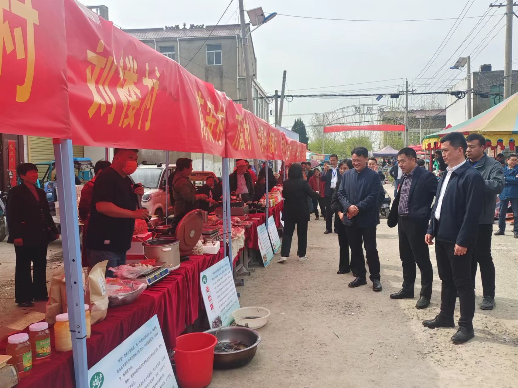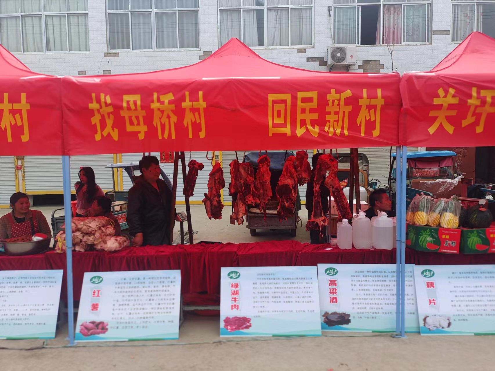 为了推介万福特色农产品的知名度和美誉度,提升市场竞争力,万福镇党委政府精心组织谋划,决定从2024年开始,举办特色农产品展销会,每年一届。首届特色农产品展销之际,镇党委政府指导各村根据自身农产品的优势和特点,拿出“拳头产品”参展。选择在砖桥村举办首届展销会,就是利用庙会人气爆满和客商云集的商机,宣传和推进万福特色农产品,扩大影响力。全镇16个村排列在一起,形成了一个特色农产品展销方阵,回汉村的绿湖牛肉、砖桥村的小龙虾、镇南村的小磨香油、找母村的红薯、关圩村的藕片、回民新村的高粱酒,有实物、有简介、有宣传、有声色。熟食和酒水可现场品尝。好客万福欢迎你,特色美味等你来。有几位赶会的旅客买了几包绿湖牛肉,打了几斤高粱酒,在大排档里,大块吃肉,大口喝酒,酣畅淋漓,不醉不休。万福给了他们一个最美的心动。临走的时候,他们大包、小包可没少带走万福的美味农产品。