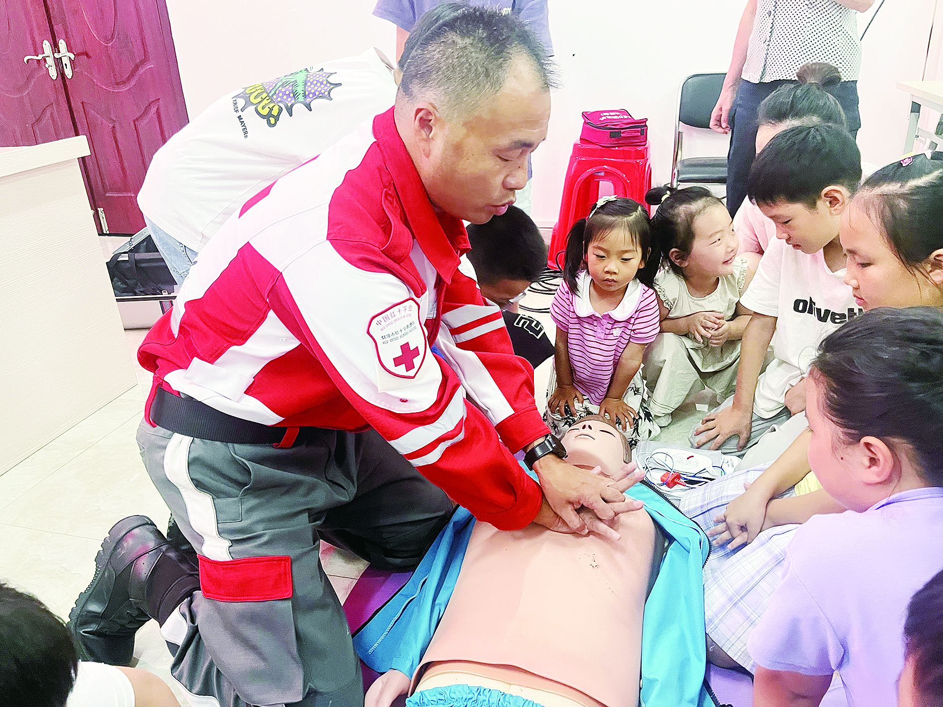 8月11日,蚌埠市红十字会专业救援队走进湖滨社区行政中心金恒社区新时代文明实践站,为辖区居民、物业工作人员及幼儿园教师带来了一场干货满满的急救知识公益讲座,将“人人学急救,急救为人人”的理念深植社区。邓婷婷 摄 0