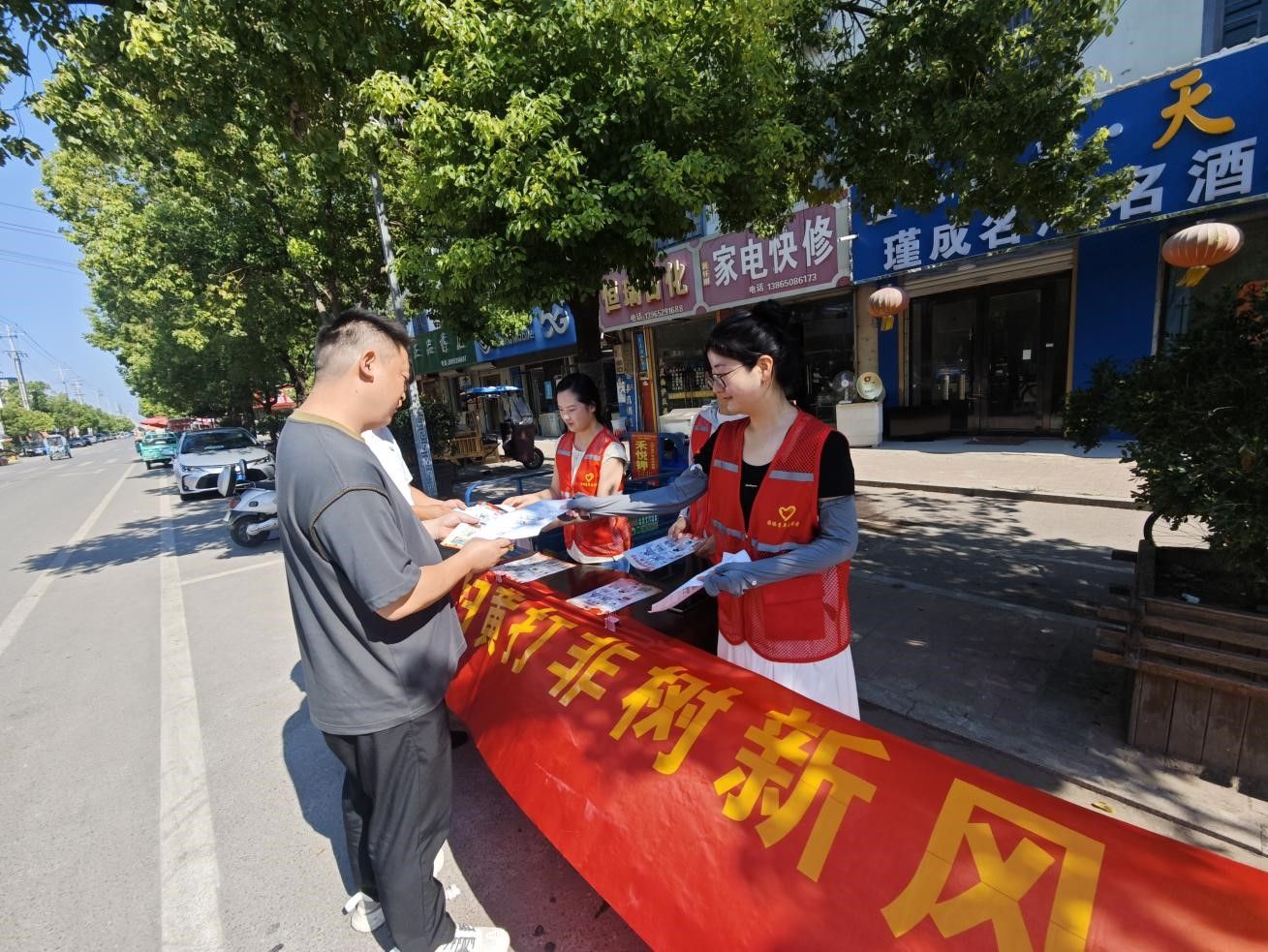 强化宣传引导,筑牢思想防线。8月19日上午,镇新时代文明实践所在镇政府门口设立“扫黄打非”主题展台,悬挂“扫黄打非树新风 激浊扬清促文明”宣传横幅。志愿者向过往群众发放精心设计的宣传单页,普及“扫黄打非”相关法律法规。号召群众自觉抵制淫秽色情、暴力恐怖等有害信息,积极举报非法出版物。同时,针对家长开展宣传引导工作,倡导其切实履行监护责任,共同为孩子构建绿色阅读空间。