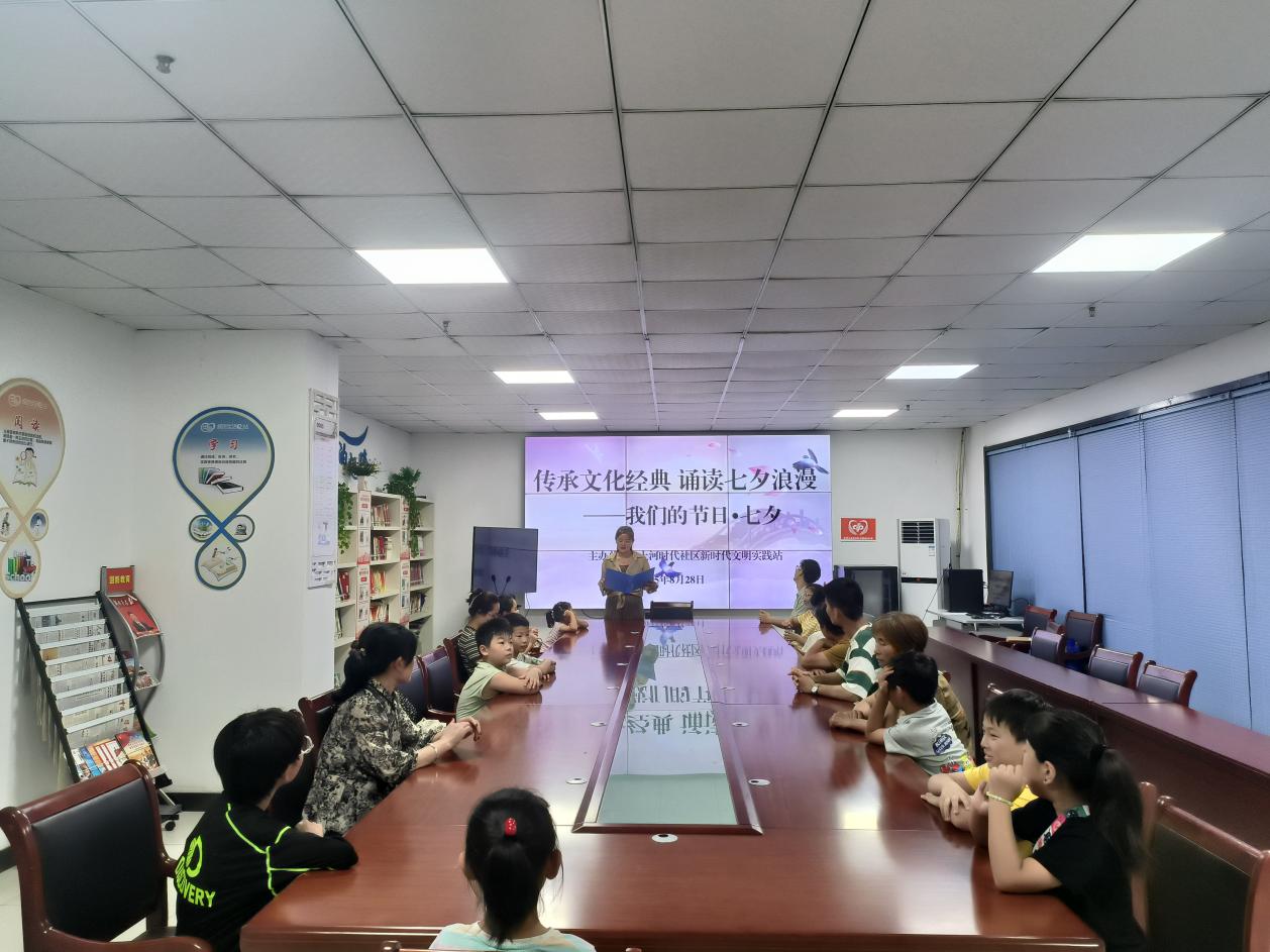 为丰富社区的文化生活,传承中华传统文化。8月28日下午,上河时代社区组织辖区居民开展“我们的节日·七夕——传承文化经典 诵读七夕浪漫”活动。 活动中,居民群众以讲故事的形式诠释“七夕节”的渊源传说、传统习俗等文化内涵。随后,社区工作人员分别诵读了《七夕·从昔人传鹊作桥》《柳梢青·七夕》等诗词,让大家深切感受经典诵读的魅力。 此次活动普及了民俗文化,增强了大家对传统节日的认知,营造了浓厚的节日氛围。(张莺)