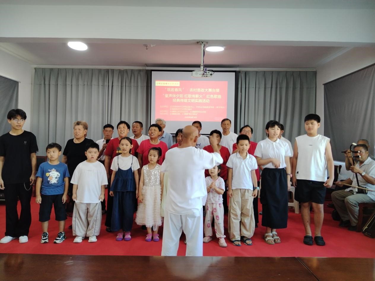 近日,五河县头铺镇新时代文明实践所三楼热闹非凡,一场以“皖”若春风·农村思政大舞台暨“童声伴夕阳,红歌传薪火”为主题的红色歌曲经典传唱文明实践活动在此成功举办。本次活动由五河县新时代文明实践中心、中共五河县委宣传部(文明办)以及头铺镇新时代文明实践所联合主办,头铺镇公共文化空间和头铺镇老年艺术团共同承办,头铺镇妇联和头铺镇“阳光驿站”协办,吸引了众多小朋友和家长前来参与。