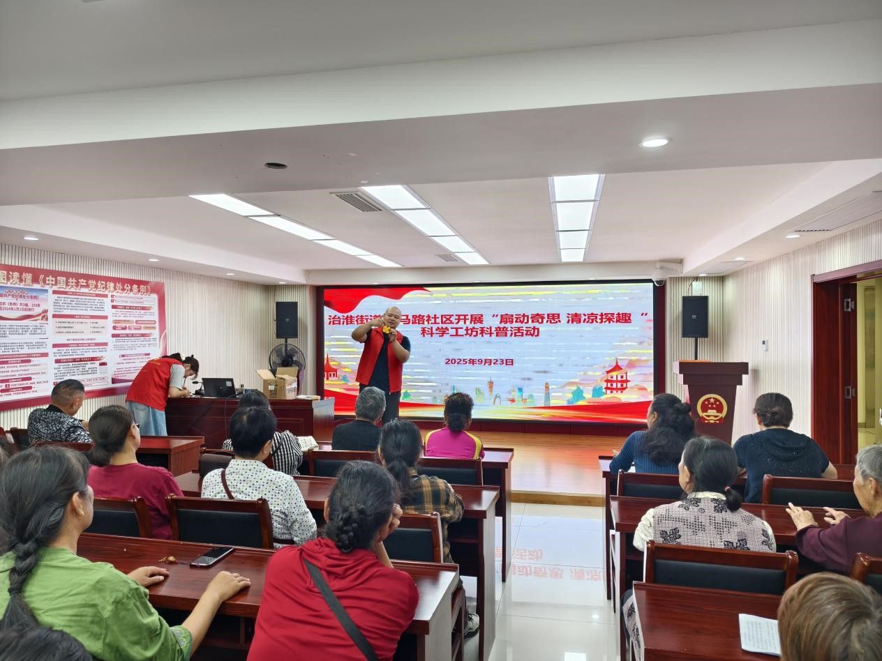 为进一步丰富社区居民的精神文化生活,普及科学知识,提升动手实践能力,近日,治淮街道新马路社区开展了“扇动奇思 清凉探趣”科学工坊科普活动。本次活动吸引了辖区众多居民热情参与,区科协的志愿者为活动提供了专业的支持与指导。