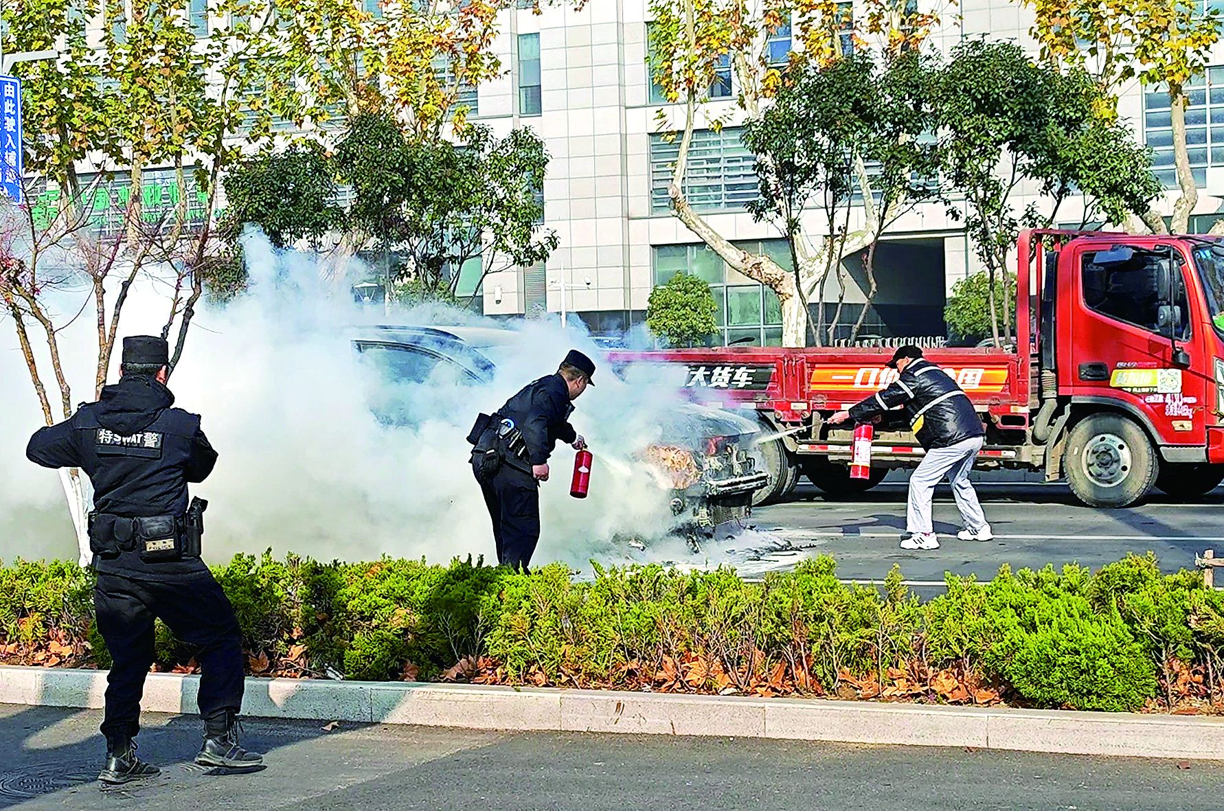 “大家分工明确,有的灭火,有的维持现场秩序,很快明火被成功扑灭。”吕宁介绍,整个救援过程持续约20分钟,前后共使用了10瓶灭火器。