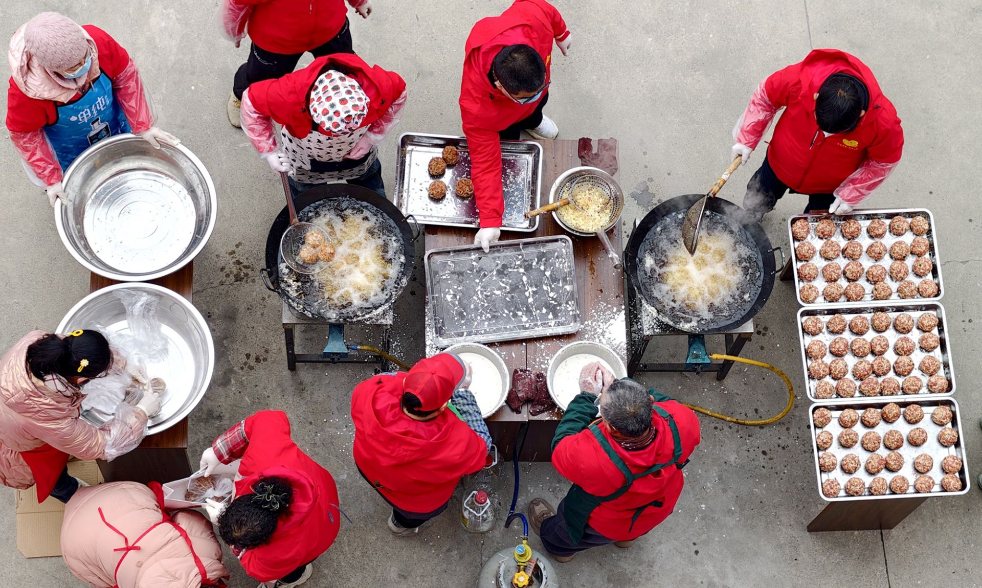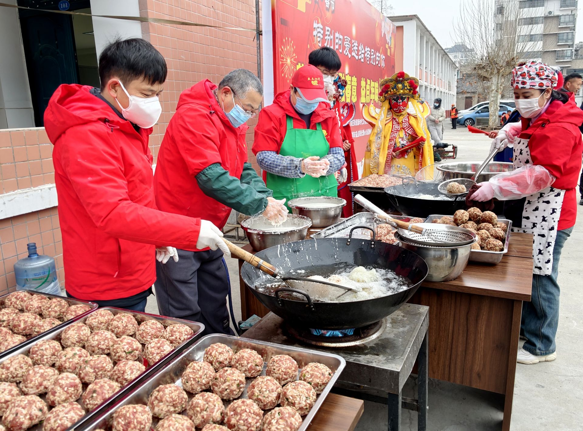 2月10日,恰逢农历腊月二十三北方小年,蚌埠市益点阳光爱心公益协会联合黄庄街道新时代文明实践所,通过炸肉圆、写春联、炸米花等充满烟火气的民俗活动,为辖区居民送上浓浓的小年温暖与新春祝福。活动现场年味浓郁、暖意融融。志愿者们分工协作、默契配合,剁馅、搅拌、搓圆、下锅,金黄滚圆的肉圆在油锅中翻滚,香气四溢。此次制作的肉圆子,是采用猪肉、米花等食材制成的蚌埠本地传统大圆子,又名四喜圆子、大糌,每个圆子4两重,口感软糯、香气醇厚,承载着本地群众对新春的美好期许。大家一边忙碌,一边话家常、送祝福,现场欢声笑语不断。此次活动共制作1200多个爱心肉圆,将全部送给辖区特殊群体、环卫工人和社区一线工作人员,用一份热乎的年味传递社会关怀。