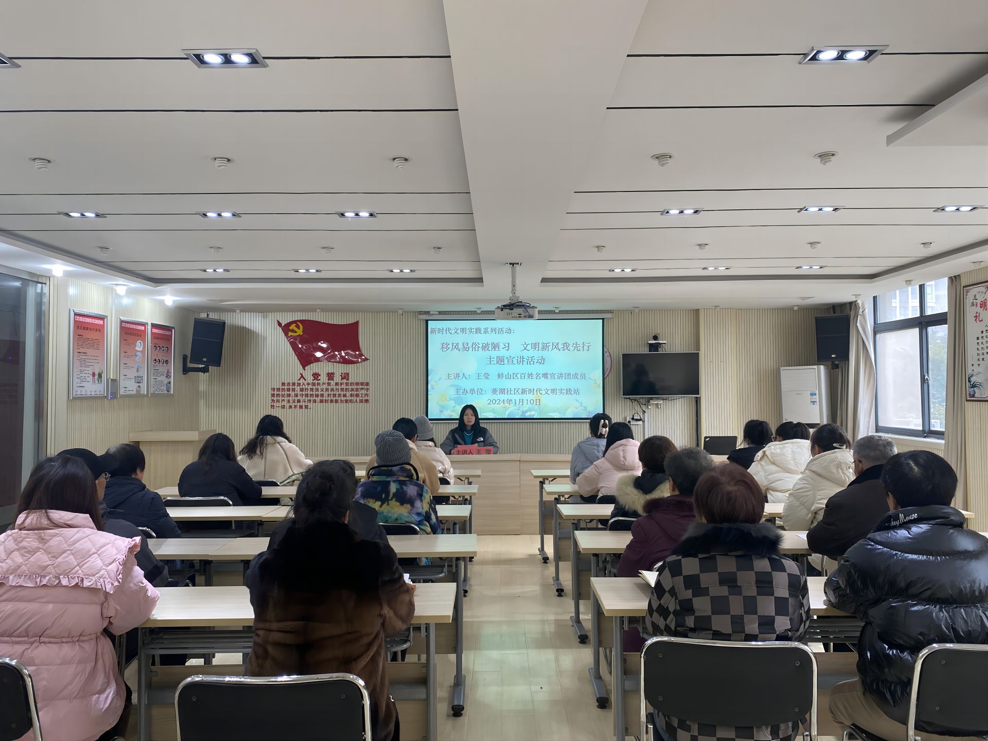 近日,蚌山区湖滨社区中心菱湖社区新时代文明实践站开展“移风易俗破陋习 文明新风我先行”主题宣讲活动,引导广大居民以实际行动破旧立新、移风易俗,树立文明新风,营造风清气正的社会新风尚。 骆惠惠 摄 【编辑:贾铁成】 43