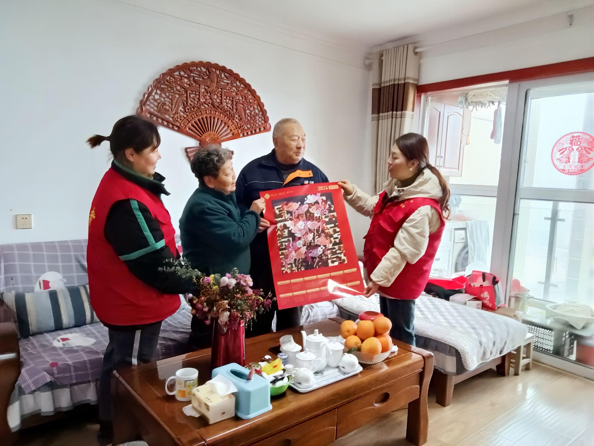 随着春节脚步的临近,新春年味逐渐浓了起来,日前,体育场社区新时代文明实践站为辖区高龄老人送去龙年年画,老人们高兴得合不拢嘴,感谢社区一直以来对他们的关心关爱。苏瑾 摄