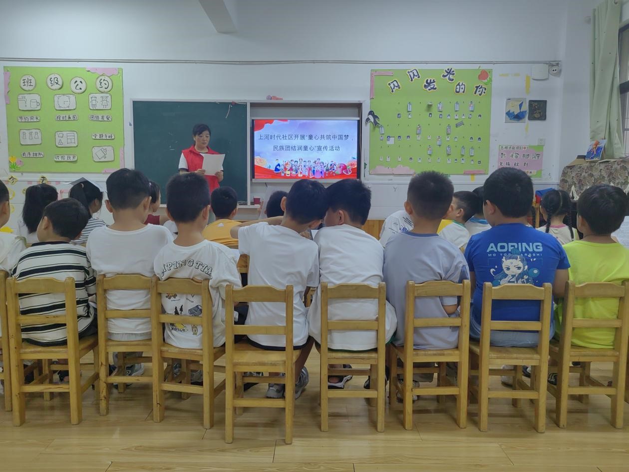 聚焦“一小”,为成长保驾护航。上河时代社区始终将关心下一代工作放在重要位置,坚持多措并举、精准发力。暑假期间,社区多次走进辖区上河时代实验幼儿园,精心开展系列主题活动:既有“悦心畅读 绿色书签”护苗行动,引导孩子健康阅读;也有“童心共筑中国梦,民族团结润童心”宣传活动,让孩子直观感受民族团结的意义;还同步开展防溺水安全教育,筑牢安全防线。