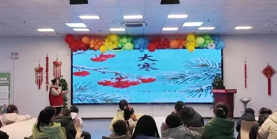 活动以共读绘本《大寒去雪乡》启幕,孩子们跟随书中脚步“走进”北国雪境,感受冰雪世界的纯净与年前的忙碌喜悦,故事里的年味与亲情,让读者们仿佛踏上温暖的归家之旅。随后的知识讲解衔接绘本内容,大寒三候、尾牙祭、除尘布新等传统习俗志愿者老师娓娓道来,让孩子们读懂节气里除旧迎新的深刻寓意。