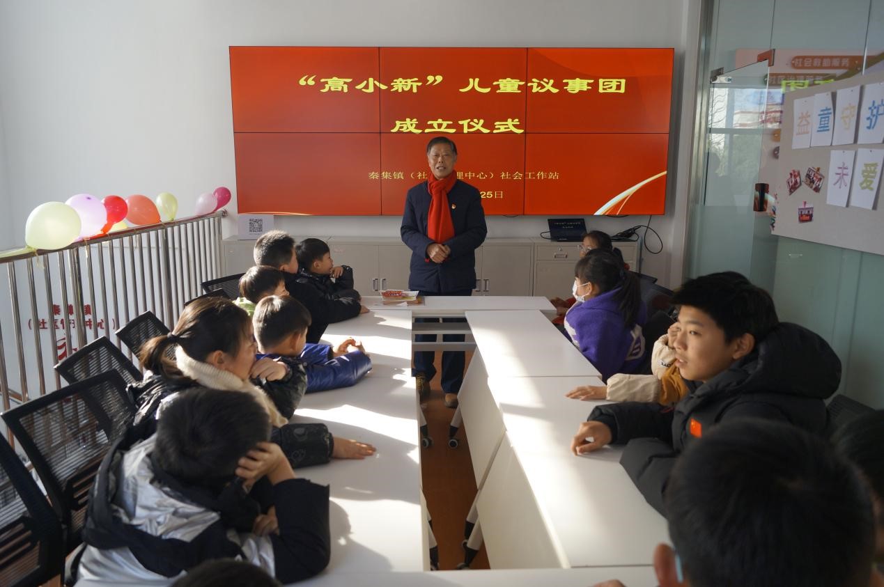 为推动儿童全方位参与、融入社区生活,更好地倾听儿童声音,促进未成年人全面健康发展,不断提升儿童的获得感、幸福感和安全感,1月25日下午,秦集镇社会工作站在高科花园站点举行了“高小新”儿童议事团成立仪式。“高小新”儿童议事团由6至16岁阶段的少年组成,自愿参加。其宗旨是倾听青少年心声,展示青少年才艺,解答青少年在成长过程中的困惑和问题,全面提高青少年的综合发展能力。高新区关工委常务副主任黄旭彬出席成立仪式。