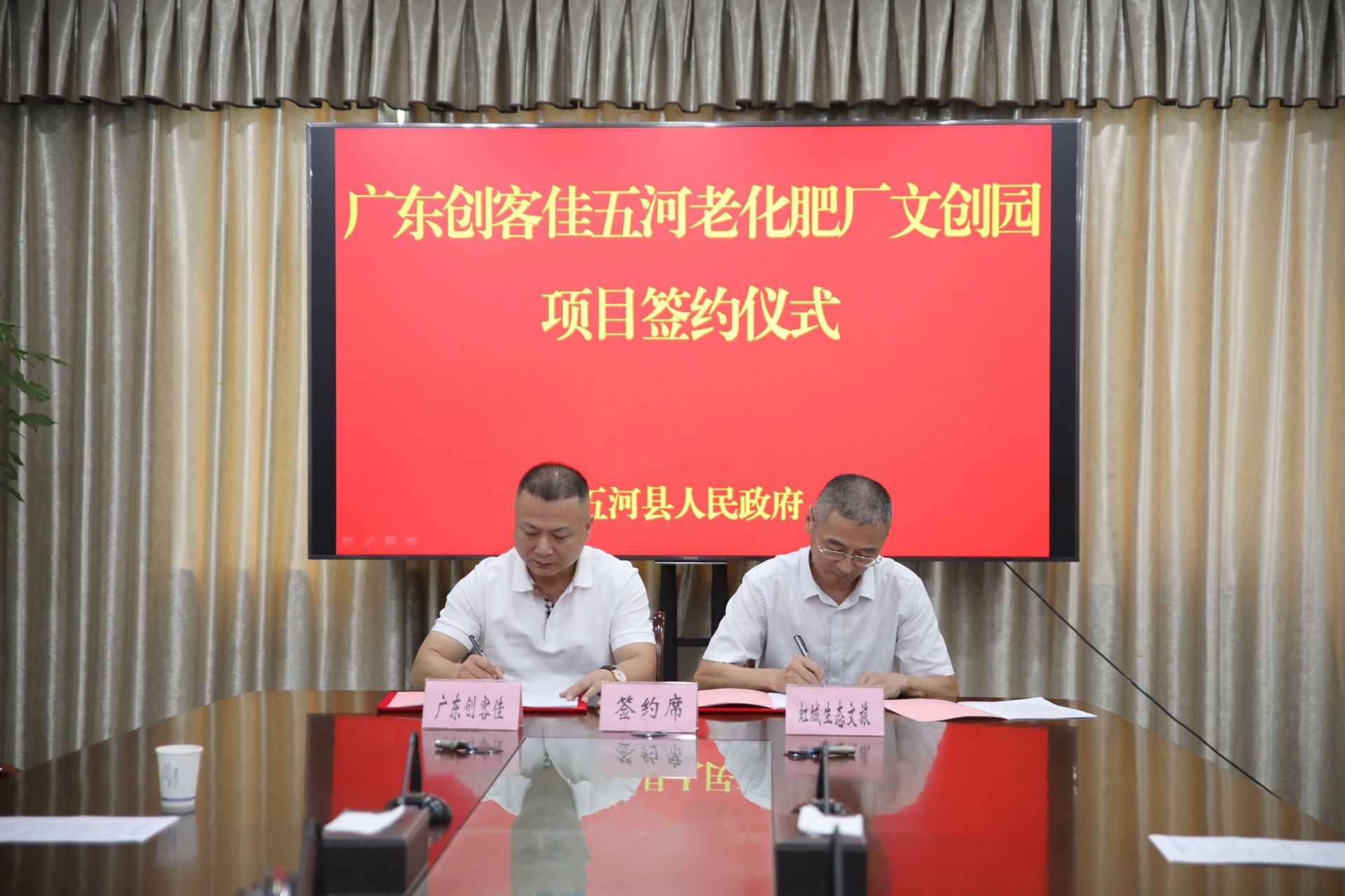 9月4日,蚌埠市五河县首个文创园项目——五河老化肥厂文创园项目签约仪式在县政府第一会议室隆重举行。安徽省虹城生态文旅开发有限公司(以下简称“虹城文旅公司”)与广东创客佳文化产业园管理有限公司(以下简称“广东创客佳”)共同签署了合作协议。
