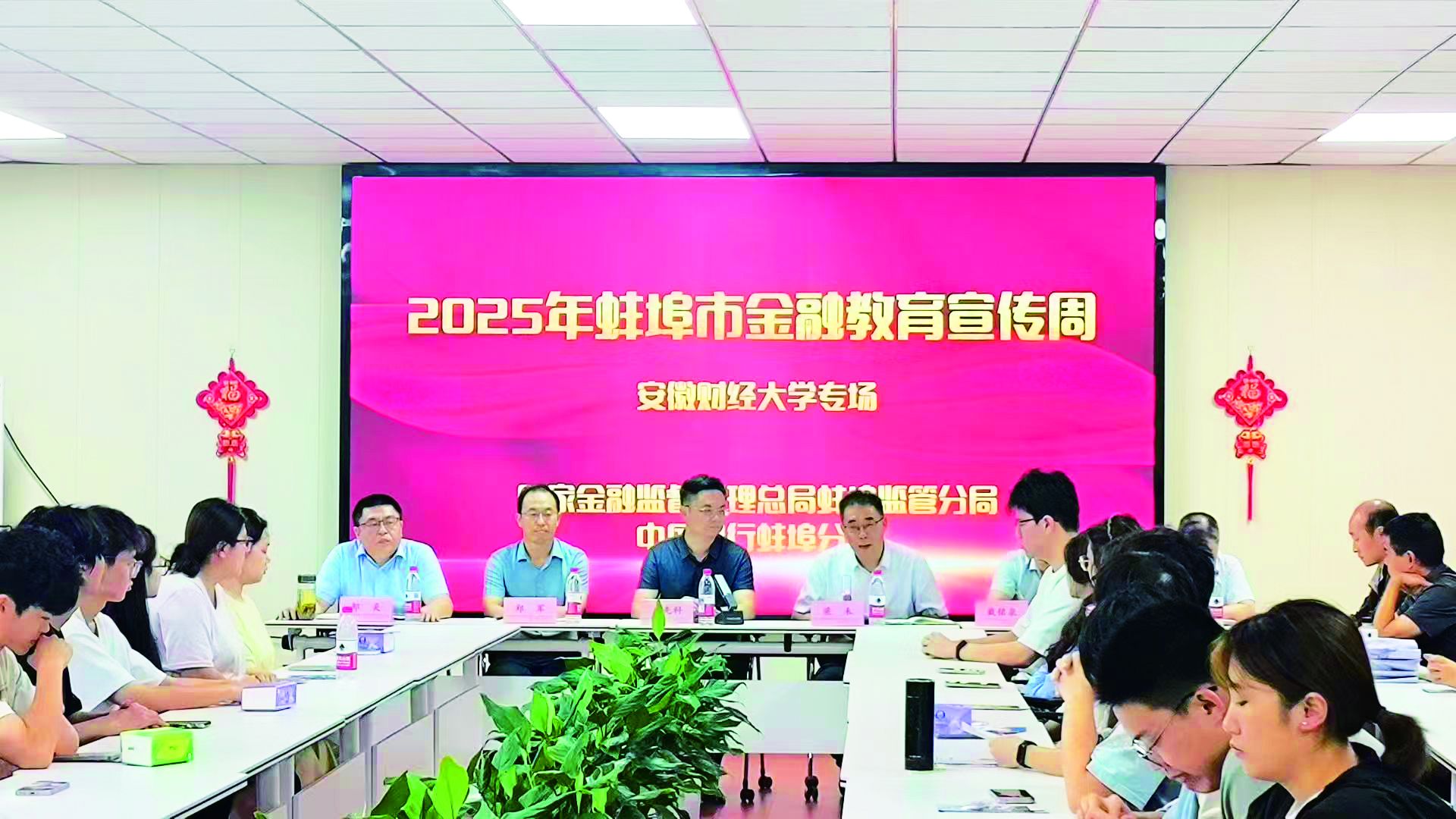 9月17日,2025年蚌埠市金融教育宣传周安徽财经大学专场活动暨“大学生金融教育赋能计划”宣讲顺利开展。活动由国家金融监督管理总局蚌埠监管分局主办,蚌埠市银行业协会、中国银行蚌埠分行承办,旨在响应安徽省金融教育宣传周“保障金融权益 助力美好生活”号召,落实中央金融工作会议要求,提升高校学生金融风险防范意识与素养。