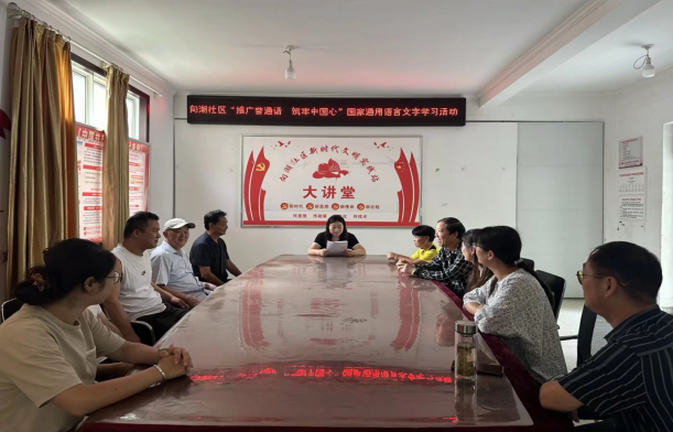 为提升工作人员语言应用能力,向湖社区依托新时代文明实践站组织工作人员开展普通话学习活动。活动中,充分讲解了普通话的由来,以及推广普通话的意义,明确要求全体工作人员积极投身推普工作,发挥带头示范作用,提升规范使用国家通用语言文字意识和水平。