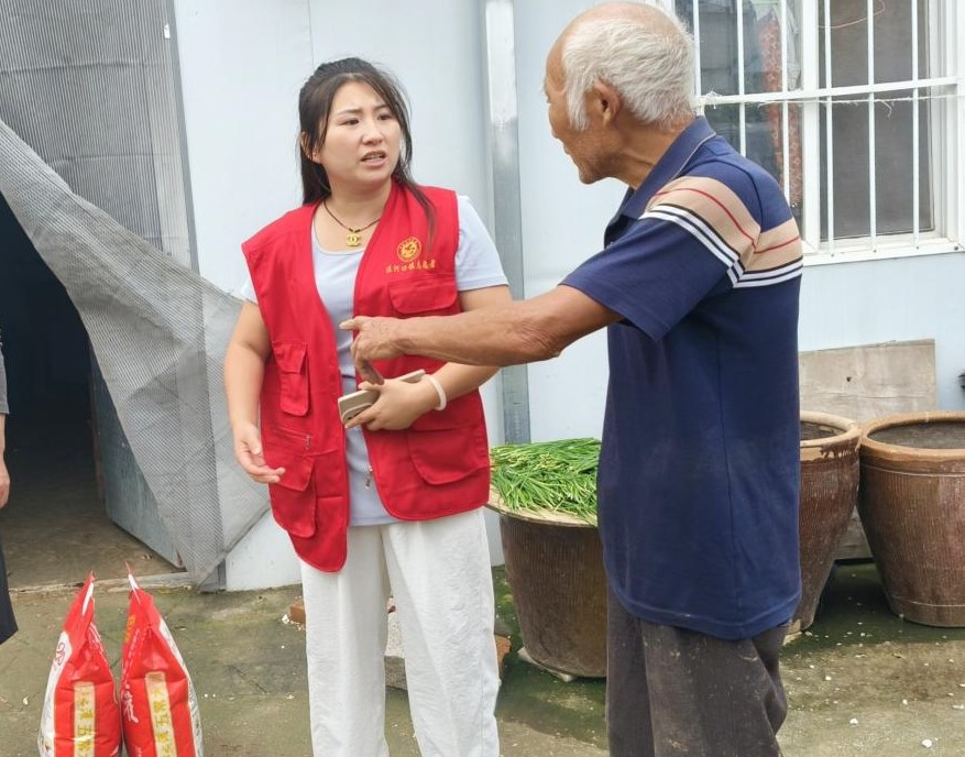 当天下午,在村“两委”干部的带领下,志愿者们带着精心准备的慰问品——大米和食用油,走进了服务对象的庭院中。这些物资虽不贵重,却凝聚着党和政府以及社会大家庭对特殊群体的深切关怀与实实在在的帮助。志愿者们与患者及其家属进行亲切交谈,详细询问他们的身体近况、生活起居、服药状况以及存在的实际困难。交谈中,志愿者们语气温和,态度真诚,努力营造轻松、信任的沟通氛围。