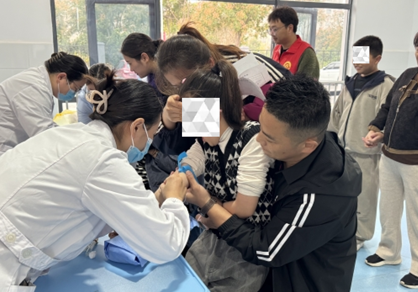 体检活动在学校精心组织和老师们的积极配合下有序进行。医护人员们耐心细致地为每一名学生进行了包括身高体重测量、内科检查、生长发育评估、抽血化验等多个项目的检查。面对这些特殊的学生,医护人员表现出了极大的耐心和关爱,他们用温和的语言、轻柔的动作安抚着有些紧张的孩子,努力引导他们配合检查,确保体检数据准确有效。学校老师们也全程陪同,协助沟通,整个体检过程温馨而顺畅。