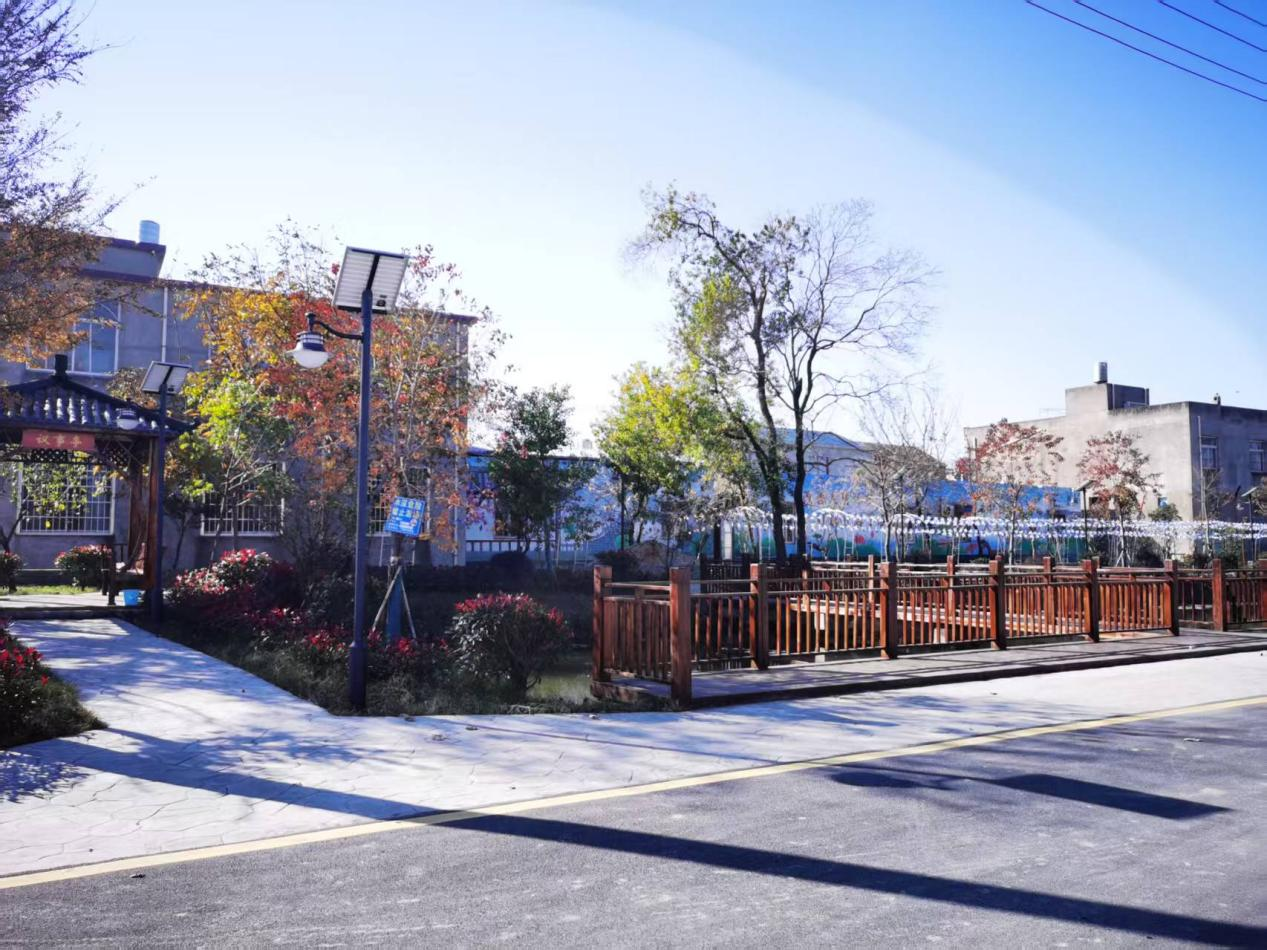 科学规划提品质,生态治理展新颜。针对2400平方米沟渠制定系统性清淤方案,彻底清除淤泥杂物、疏通水系脉络,从根源上改善水质。同步配套建设休闲步道、仿古议事亭,错落种植红花继木球等景观绿植,安装太阳能路灯点亮夜间休憩空间。昔日“污水横流、杂物堆积”的沟塘死角,如今呈现“水清岸绿、路通景美”的宜居画卷,成为串联村庄风貌的生态廊道。