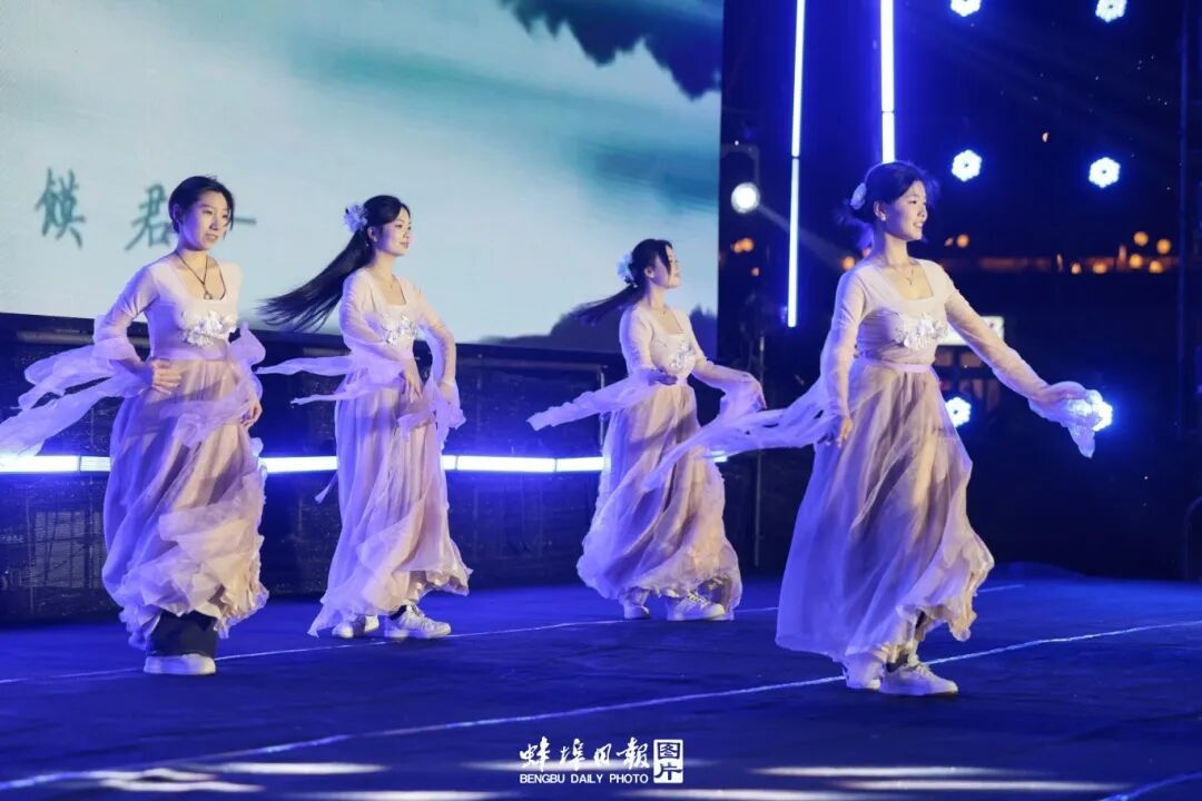 来自安徽财经大学、蚌埠医科大学、蚌埠学院、安徽科技学院、蚌埠工商学院、安徽电子信息职业技术学院的学生们,本土乐队及网红歌手姚大、常磊磊轮番登台,用国乐、电音、摇滚、说唱等多元形式连续2小时的演出为现场观众献上了一场“传统+潮流”的青春盛宴。