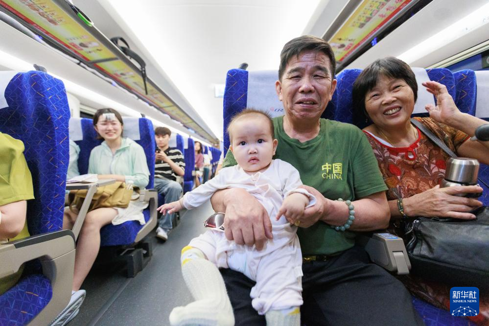 2023年8月8日,贵阳至南宁高速铁路贵阳至荔波段正式开通运营。这是人们乘坐首发列车出行。新华社记者 刘续 摄