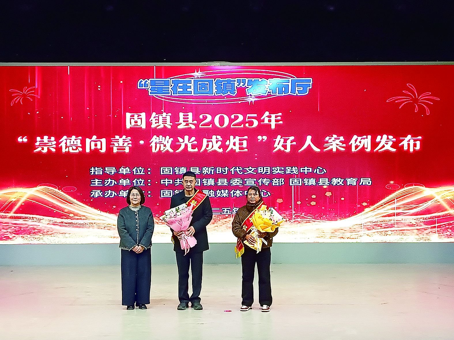 观看好人事迹展播、发布好人案例、好人代表齐诵《好人倡议》……日前,固镇县2025年“崇德向善·微光成炬”好人案例发布活动举行。活动通过欢庆·聚光向善、致敬·凡人善举、传承·薪火不息三个章节,弘扬凡人善举,传递榜样力量,营造学习好人、争当好人的浓厚氛围。 陶安杰 摄