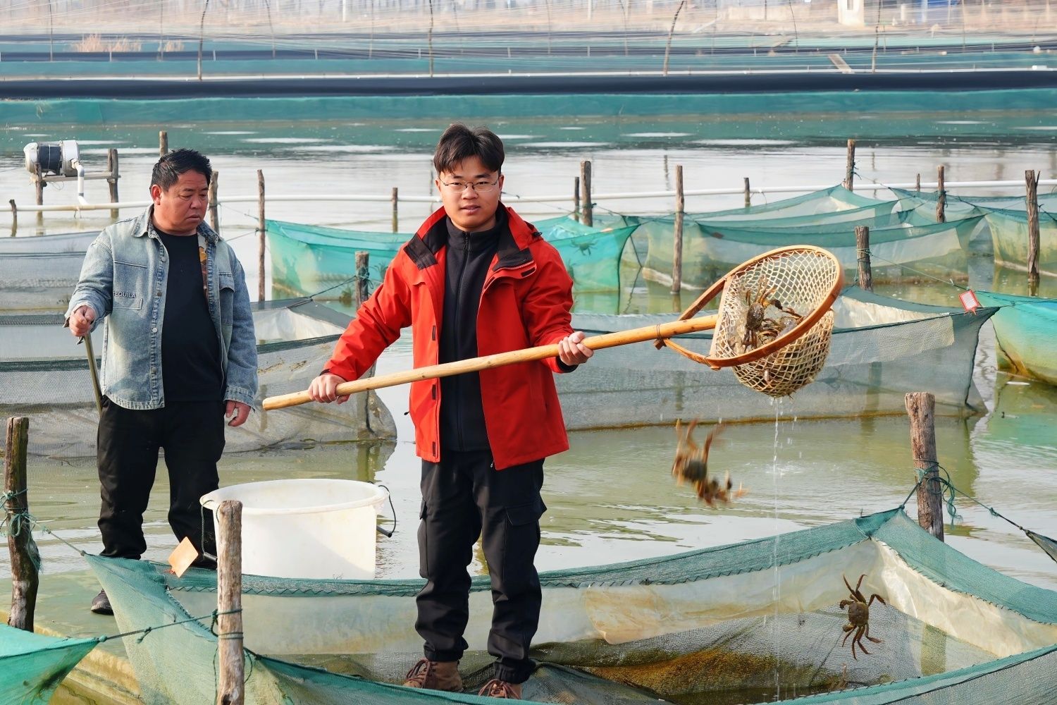 螃蟹是春节期间必备的美食,随着春节的临近,安徽省蚌埠市五河县螃蟹养殖户正加紧开展春节前的捕捞作业,确保新鲜螃蟹及时上市,满足节日市场需求。