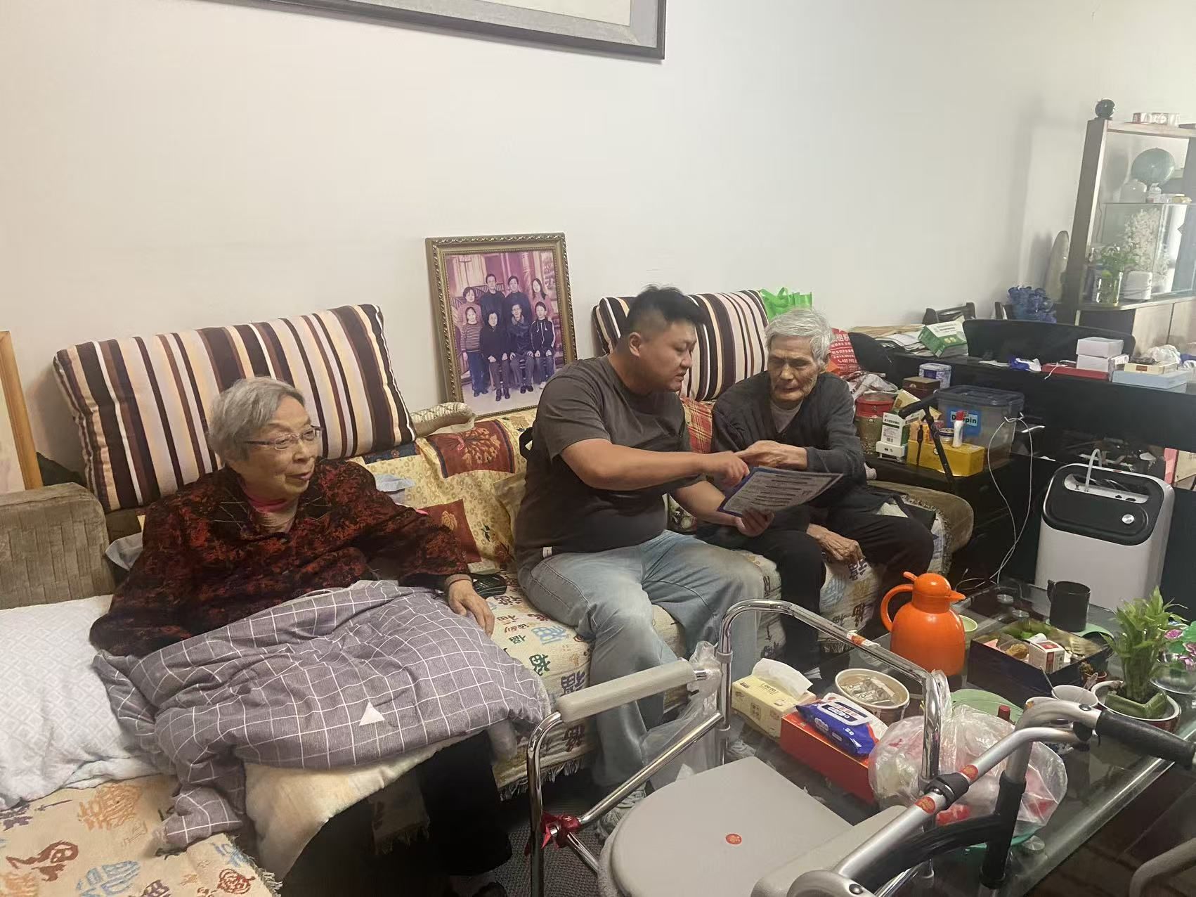 安全知识送上门,筑牢生活防护网。针对高龄退役军人记忆力减退、安全意识薄弱等情况,服务站开展“安全守护行动”,党员志愿者逐一上门帮助检查家中用电用气设备,更换老化插座,耐心讲解安全用电用火常识,叮嘱老人做到“人走电断、火源远离”。同时,结合近期高发的养老诈骗案例,工作人员向老兵及家属发放反诈宣传手册,现场讲解冒充亲友、保健品推销等常见骗局,帮助安装国家反诈中心APP,增强识骗防骗能力。“年纪大了,有时候是容易上当,多亏你们常来提醒!”一位老兵家属连连称赞。