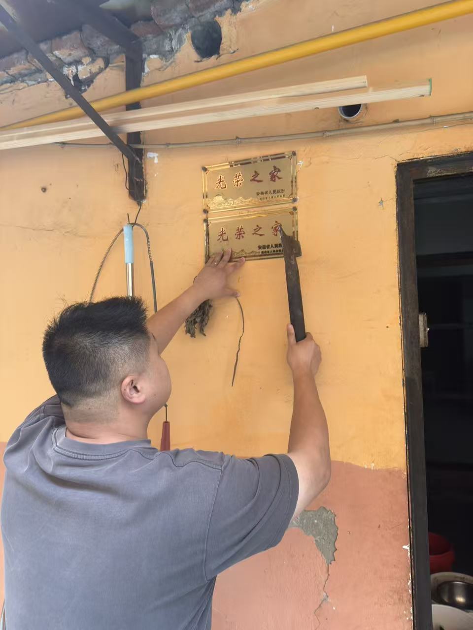 光荣之家铭荣誉,上门慰问暖兵心。服务站工作人员与党员志愿者组成专项服务队,逐一上门为退役军人家庭安装“光荣之家”牌匾,与老兵及家属亲切交谈,详细询问身体健康状况与生活需求,建立个性化关怀档案。“这块牌匾是荣誉的象征,感谢党和国家一直记得我们!”一位退役老兵激动地说。通过挂牌与慰问相结合的方式,既彰显了社会对军人的尊崇,也传递了社区对退役军人的真挚关怀。