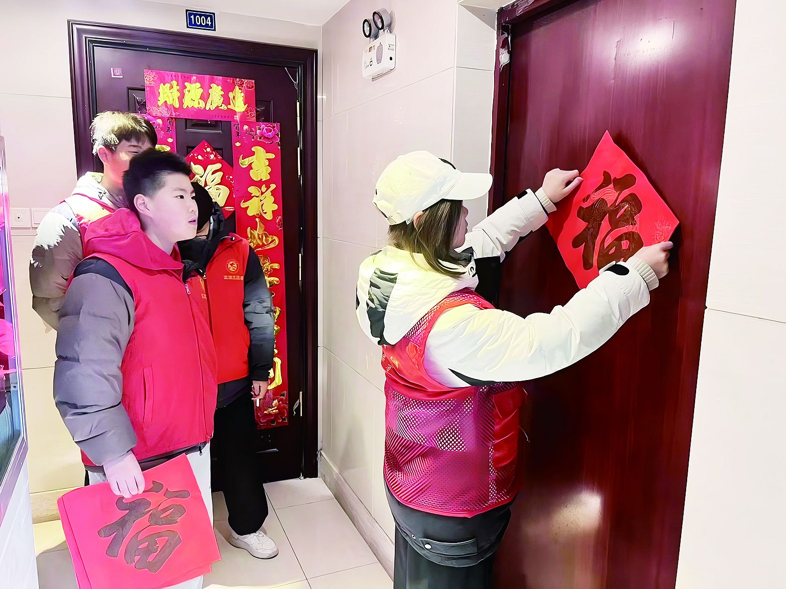 近日,金恒社区“125”青鸽志愿服务队携手新城滨湖学校,开展“青鸽送福 平安迎新”活动。学生志愿者细致排查消防通道,确保通畅安全,并为整洁楼道贴上福字,传递新春祝福。